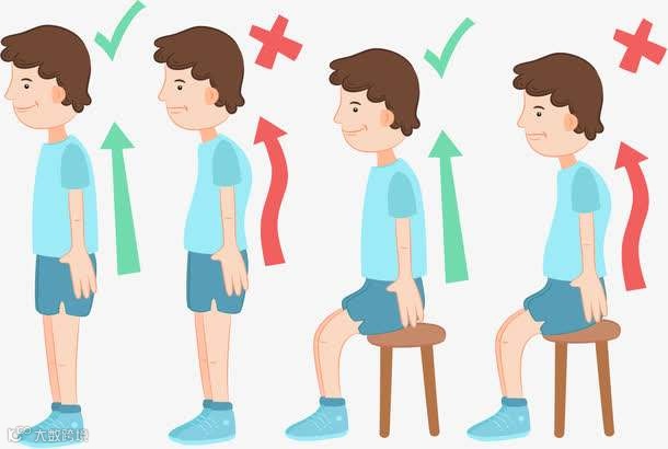 4)避免挺着肚子走路,站相不好的孩子很多都有这些问题:身体重心放在单腿上、驼背、腆肚子、探脖子、含胸等,因为这可以尽可能多地“放松”不用于支撑身体的肌群,但是这样造成腰椎前凸会压迫到腰椎神经。所以就像从小听到家长对我们说的那样,平时走路的时候一定要注意挺胸抬头!