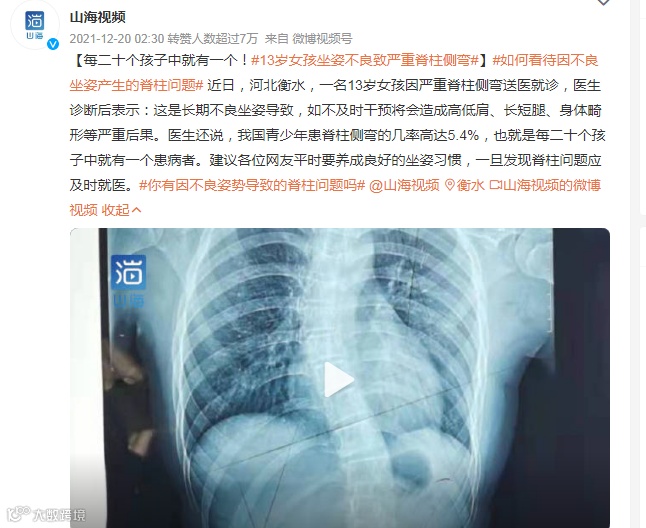 如果发展到重度脊柱侧弯,就需要进行全麻手术治疗,风险系数大。