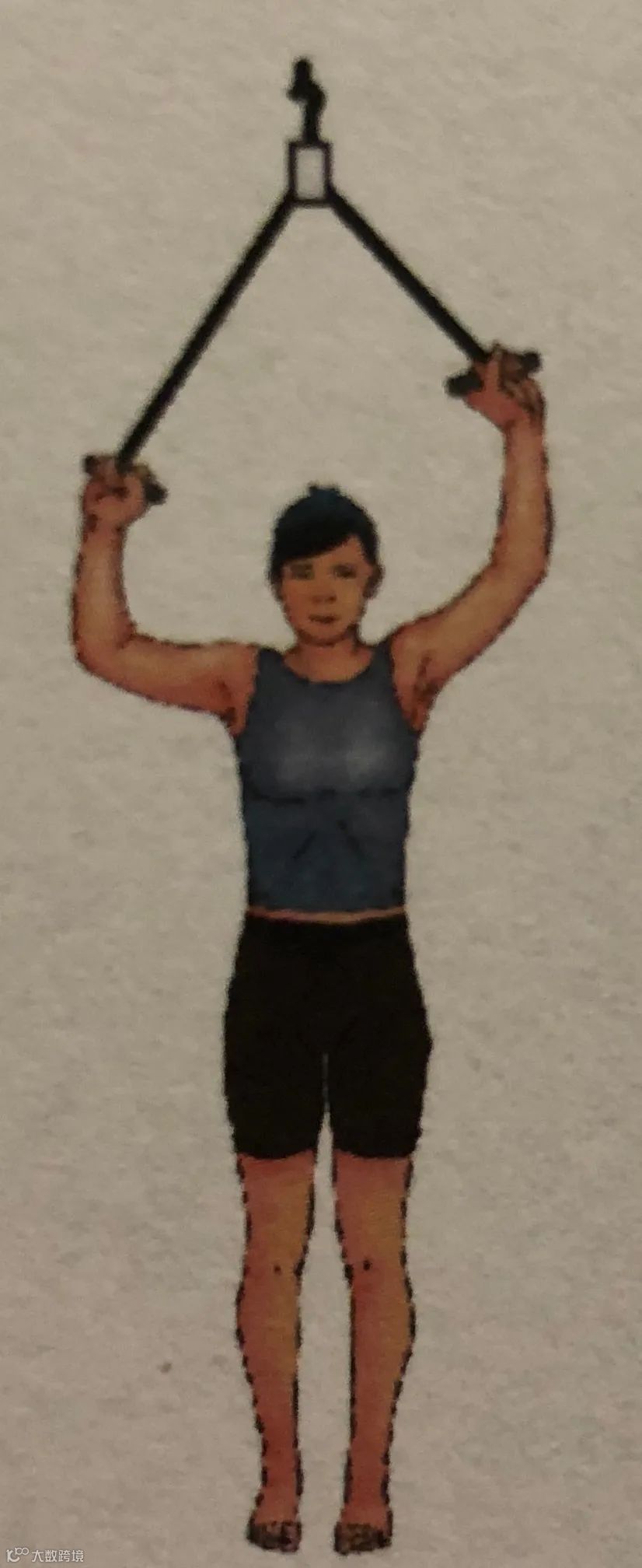7)拉环运动:如右图,利用活动拉环进行锻炼,双手分别拉住两个拉环,健侧手向下用力,使患侧手被动上举。