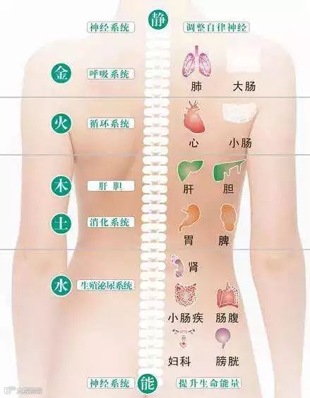 脊柱两旁有人体的膀胱经,而人体的五脏六腑在背部膀胱经上均有腧穴,这些腧穴是运行气血、联络五脏六腑的通路,因此刺激这些穴位可起到振奋五脏六腑的阳气的作用。