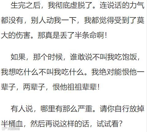 但凡在月子期间受到伤害的女人,一辈子都不会忘记这种伤害。因为,那不是在伤口上撒盐。那是,在缓慢地放血。
