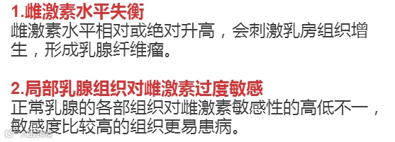 乳腺纤维腺瘤的发病原因还不明确,但一致认为和以下因素有关: