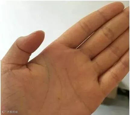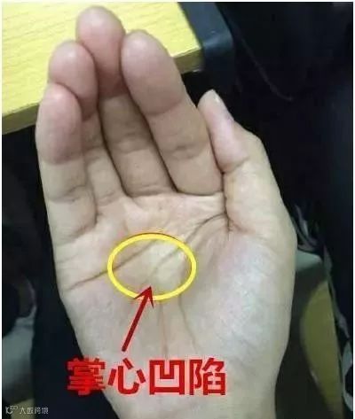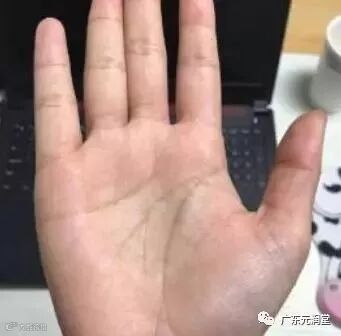 从下图的手相看,掌心凹,这能够聚财,但是此人的掌心气色透暗青,说明这位女士的近运不利,去年今年容易损财。加上这位女士的右手还是变形的假断掌,说明事业的初期波折阻碍比较多,事业不利。