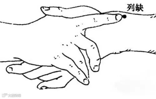 3、治偏头痛、落枕、小儿尿床、成人前列腺疾病:按揉列缺穴