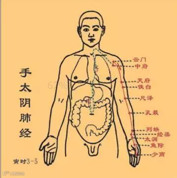 手太阴肺经运行时间:寅时(清晨3:00—5:00)
