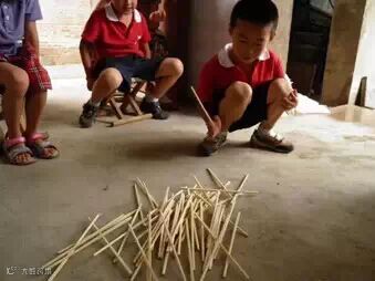 我们会在破旧的课桌下缠绕上绳子
