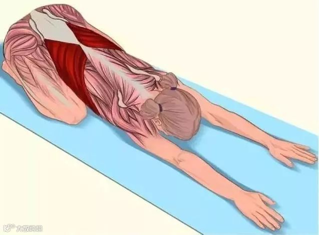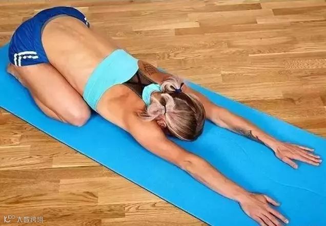 要点:跪立,双腿分开,臀部坐向脚后跟,身体向前,试图用额头触地。