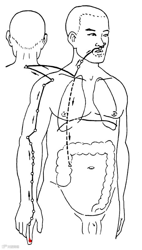 实证:呼吸不畅、咽喉异常、胸闷、气喘、扁桃炎、咳嗽、肩背酸痛易患痔疮等。