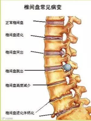 上图是我们的脊椎病变示意图。我们脊椎的骨头和骨头之间,都会有脊间盘。那椎间盘到底有什么作用呢?椎间盘这个东西,里面80%都是水,越是年轻人,里面的水份含量就越高。