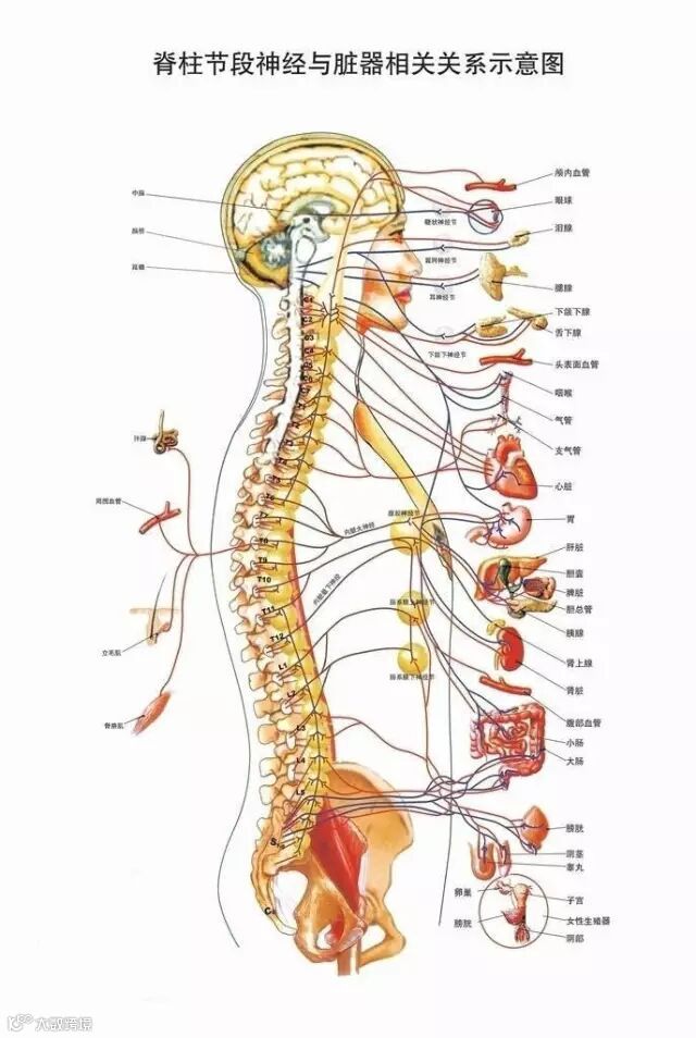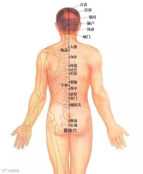 脊柱是大脑的延伸,大脑通过脊髓指挥全身的活动。脊背是督脉循行的部位,为什么叫“督脉”呢?督就是“都督”、“总督”的意思,督脉就是总管全身阳气的一条经脉。脊背两旁是足太阳膀胱经循行的部位,膀胱经是人体循行部位最广的一条经脉,阳气最多,而且膀胱经跟肾经相表里,肾主水,膀胱主管全身的水液代谢。可以说,脊背是全身气血运行的大枢纽。