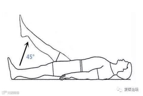 1、直腿抬高:仰卧平躺在床上,先用最大力量把腿伸直,之后抬起腿,大概抬到脚后跟离床面45°左右