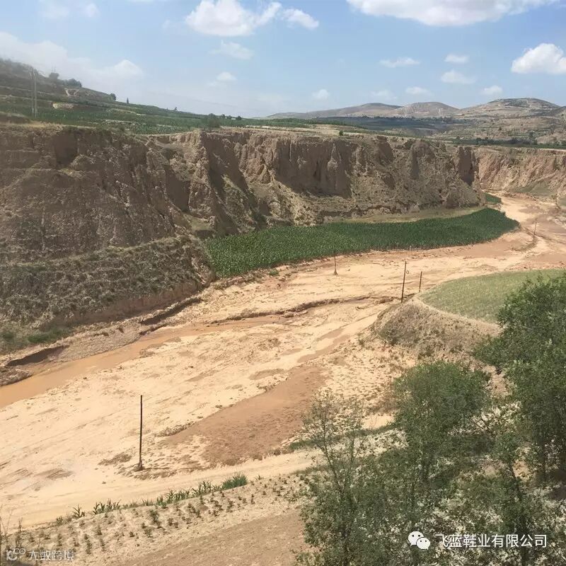 河床早已不再流水,唯一湿润的土地种了一些高粱或其他;土丘上千沟万壑,如岁月沧桑的老人