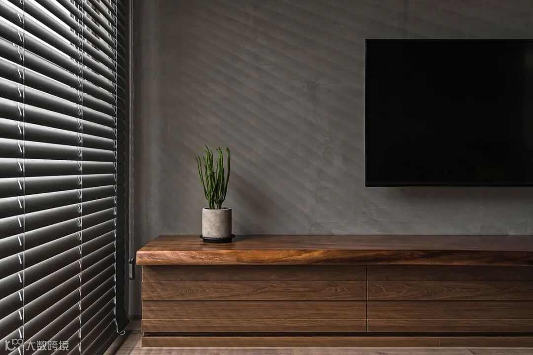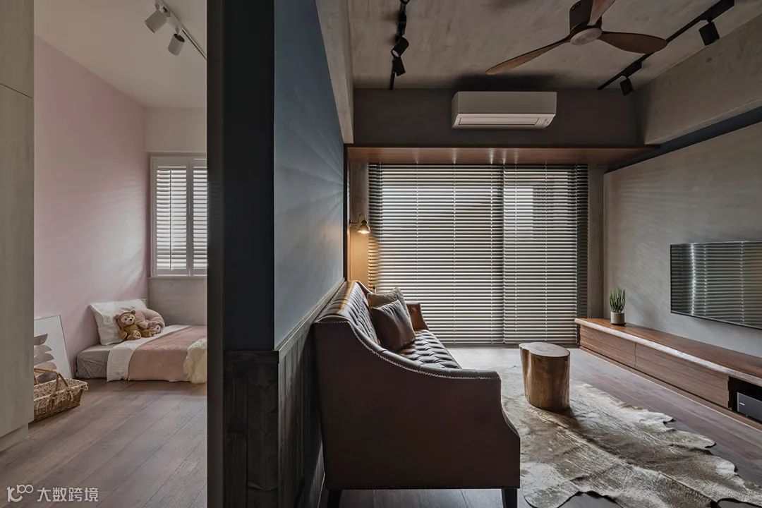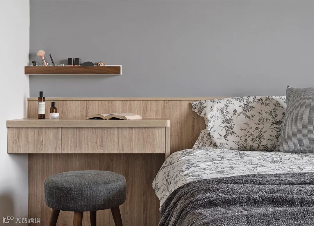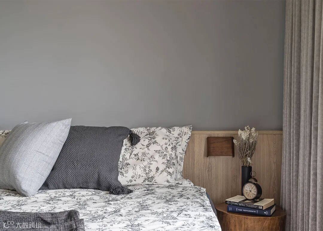 全然跳脱客厅调性,以暖灰墙映亮卧房主景