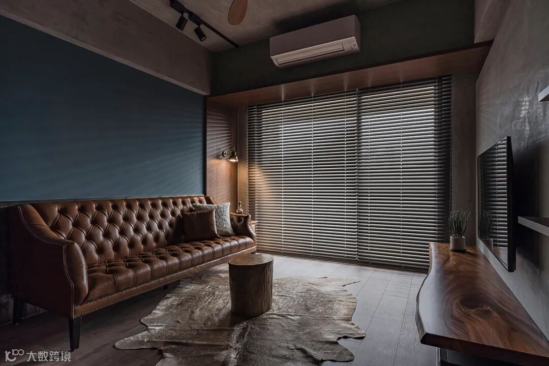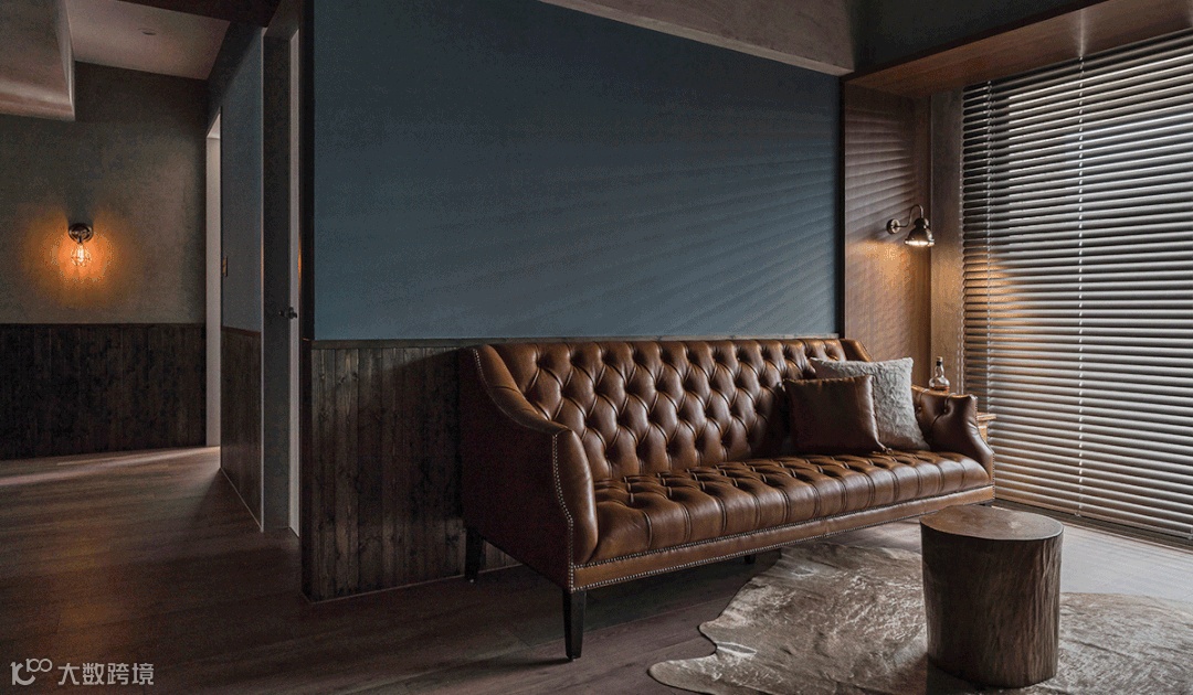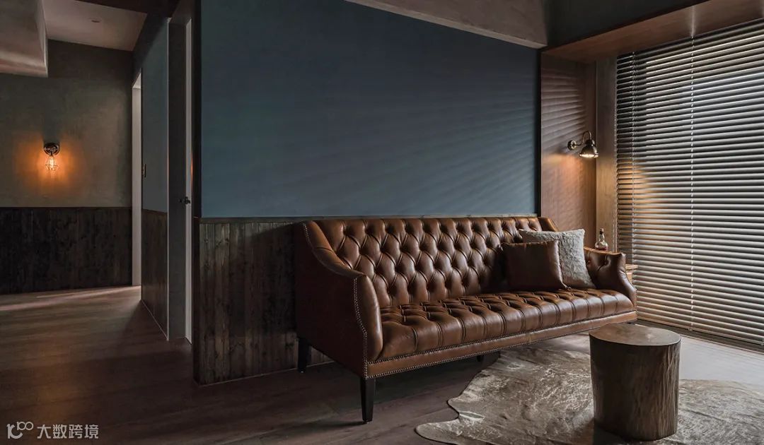 还配上牛皮拉釦沙发、法国古董柜及天然老木块