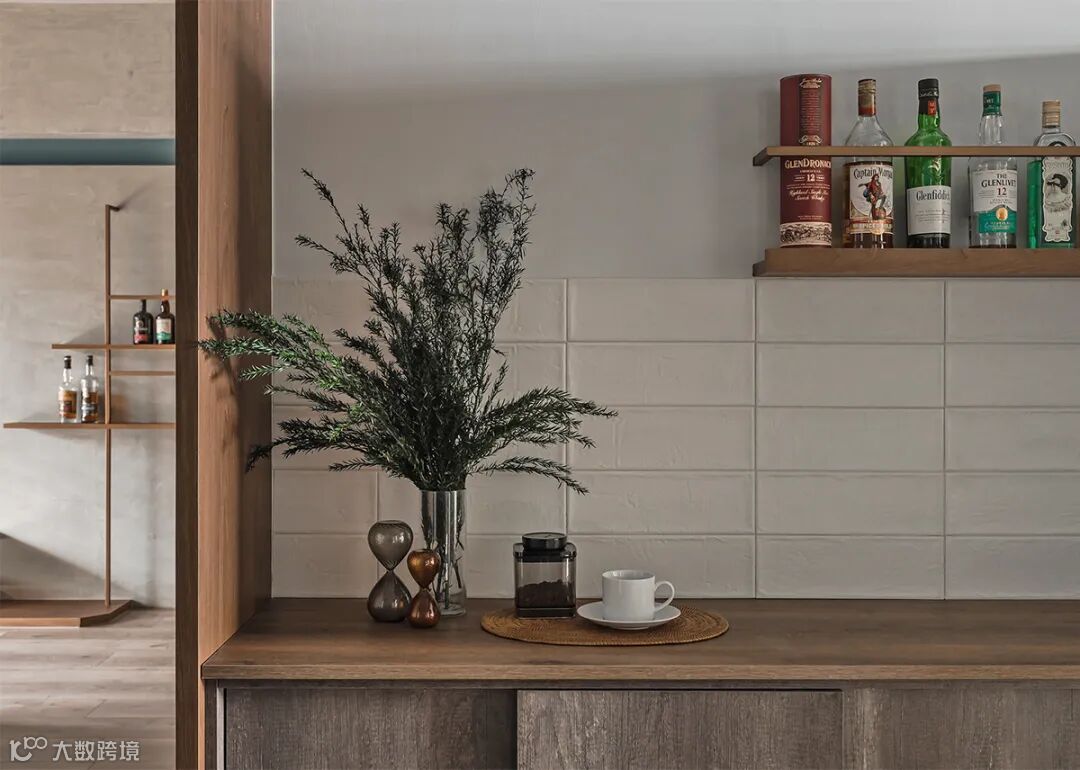 移步向前,纤细红铜撑起男屋主珍藏烈酒