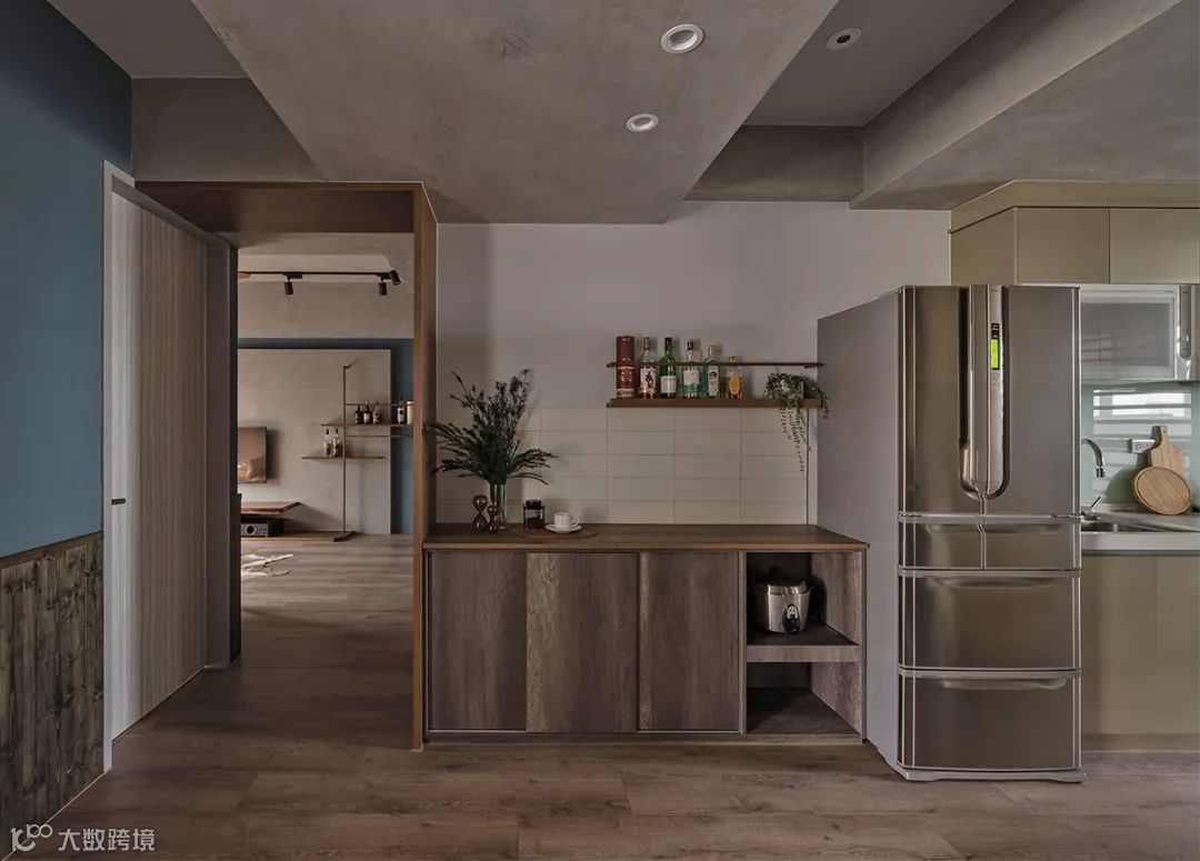 如此光景源自开放式配置,藉由餐边柜延展下厨范围