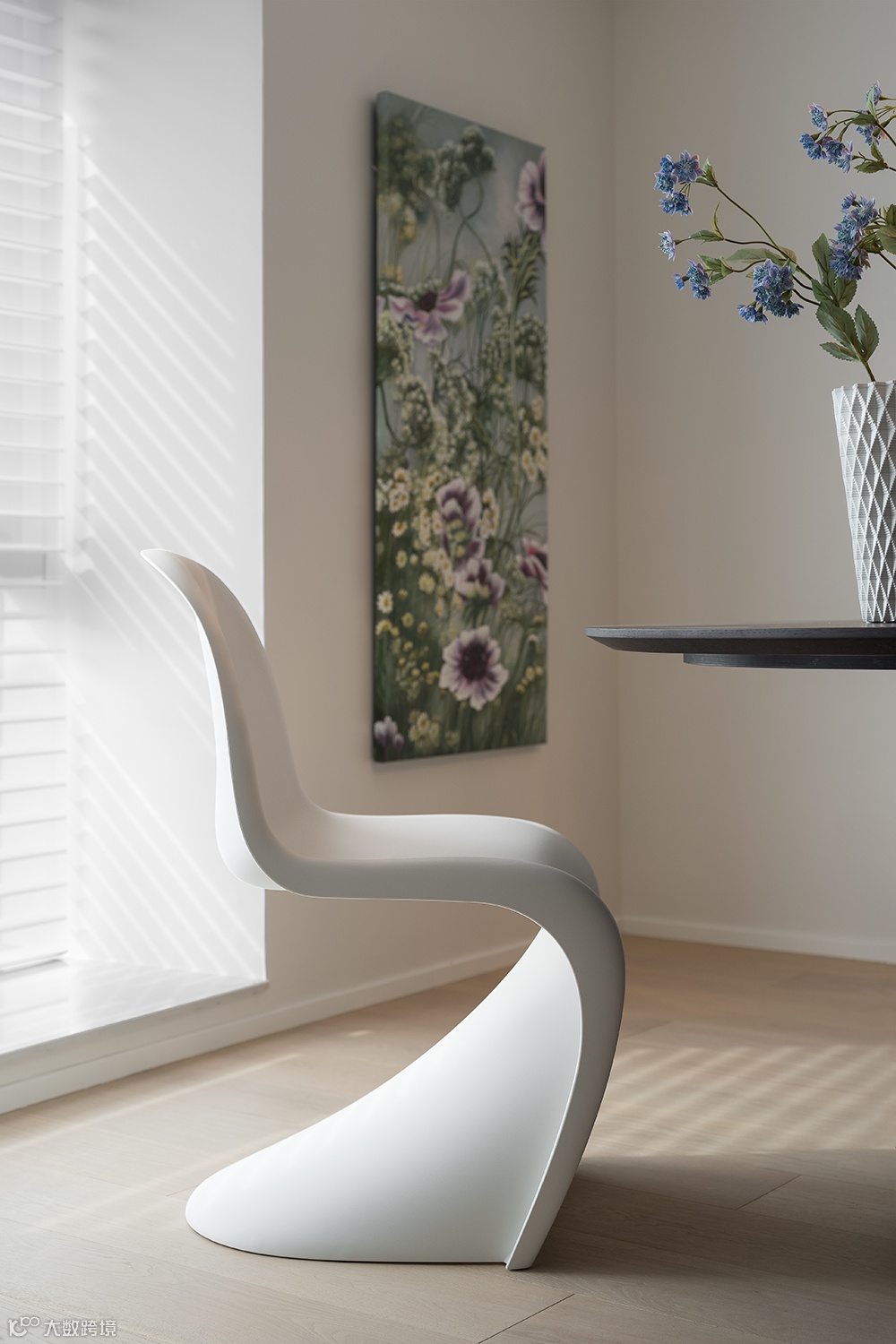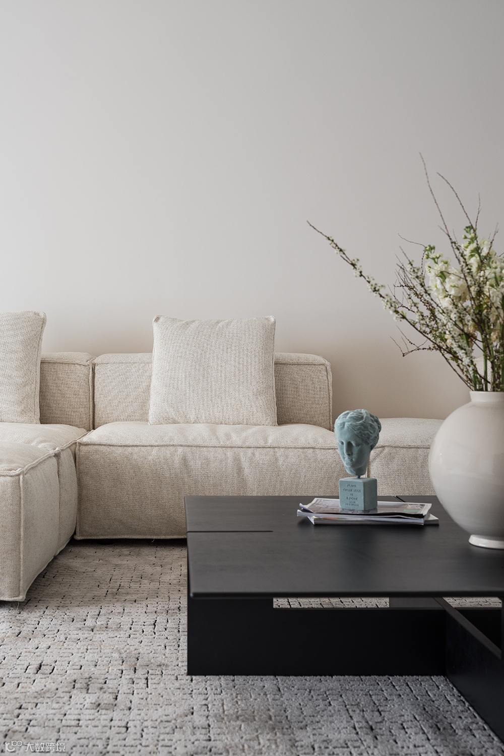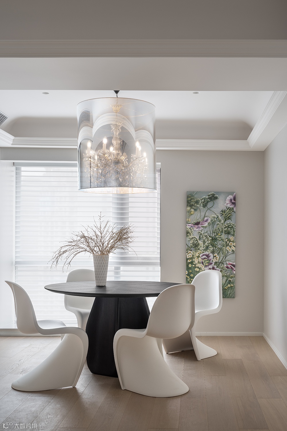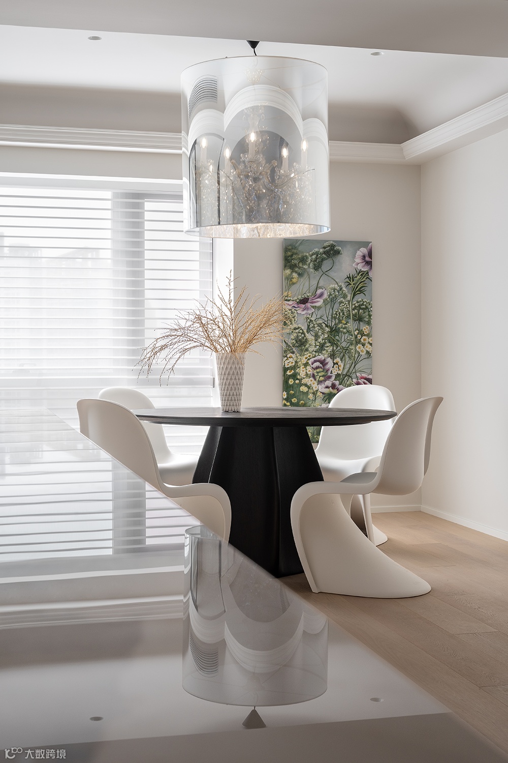 黑白极简几何感的艺术玄关柜、搭配艺术装置画、个性艺术品,丰富了空间的延伸感与想象力。