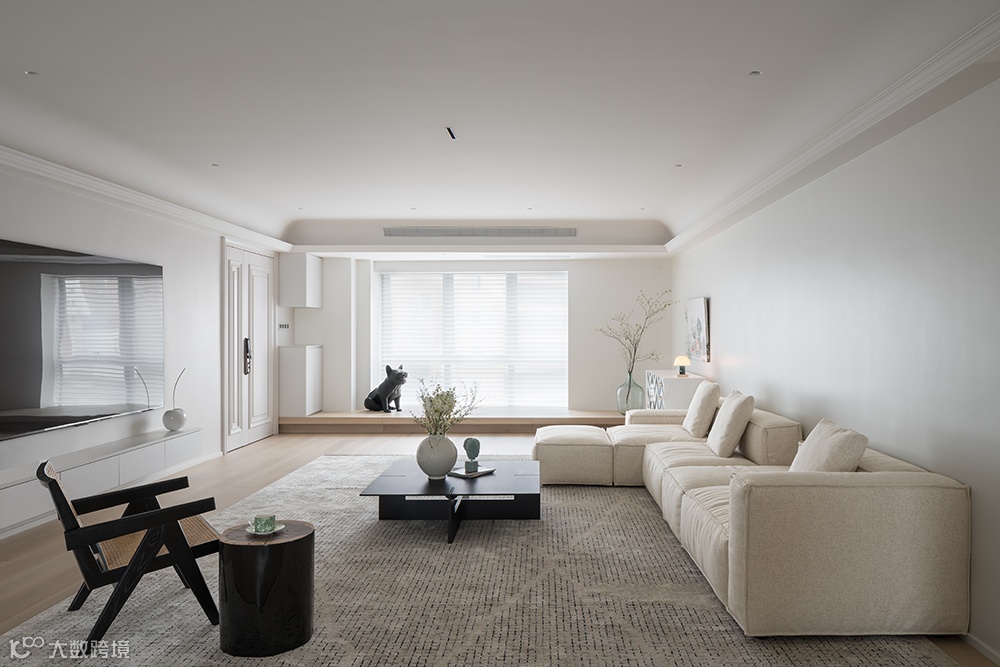 本案,300㎡全案设计落地大平层,屋主是95后的年轻夫妻,女主人是拥有众多粉丝的时尚自媒体博主,一家三口的幸福篇章,将在此空间续写。原交付标准过于繁重奢华,屋主喜欢宽敞明亮,干净整洁的空间。