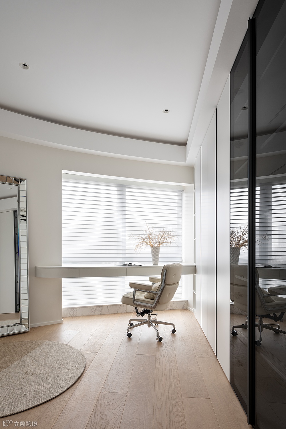 考虑到屋主行业的特殊性,设计师设计了内外两个衣帽间,外侧为女屋主的时尚小天地,里侧为男屋主的衣橱。