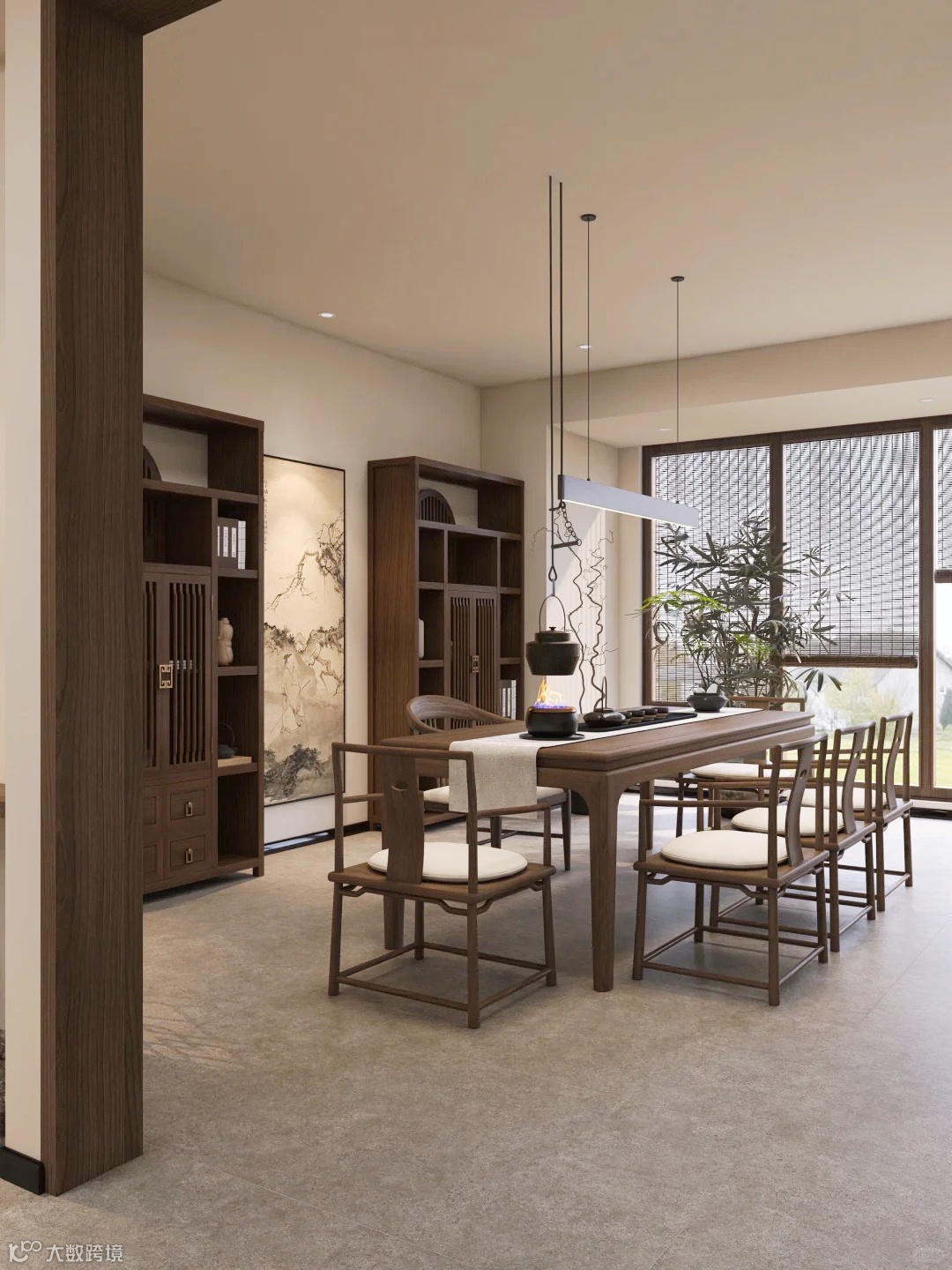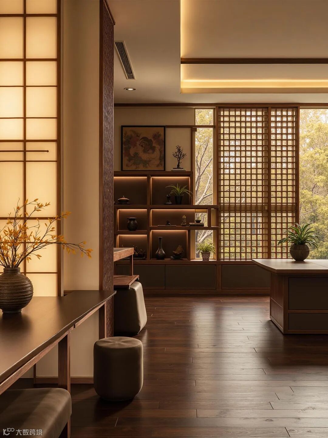 - 元素:取其神韵,去其繁杂:提炼传统符号(竹、松、山水、书法、格栅),用简约设计呈现,不做过度雕饰。