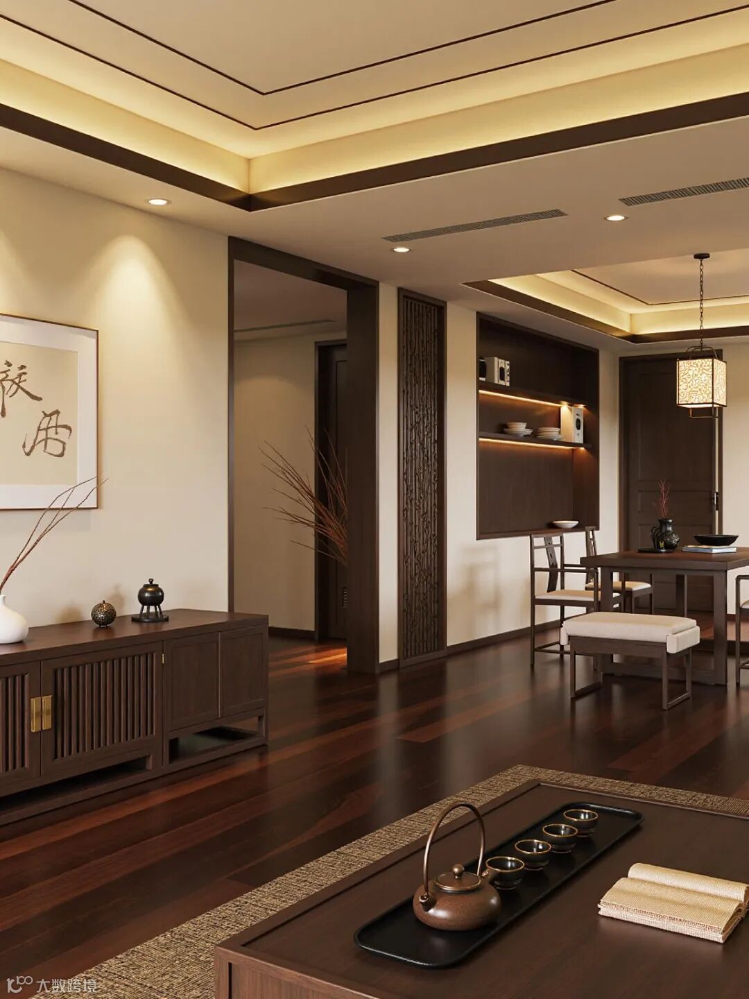 作为家庭活动中心,客厅既要兼顾实用,又要撑起东方意境,搭配重点如下: