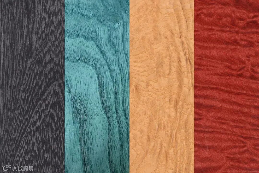 染色木皮表面质感自然、纹理独特、色彩丰富、有个性。在装饰效果与性能上优于天然木皮与传统实木,有效缓解了木材资源匮乏。
