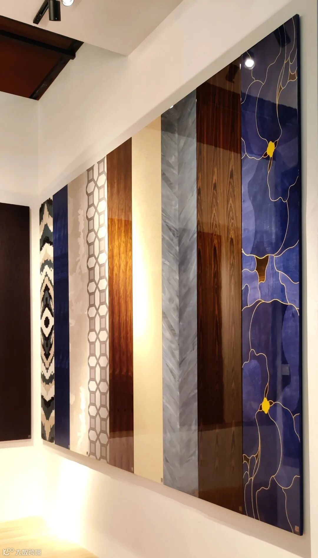 能够应用于家居环境中的橱柜饰面、地板、灯饰;游艇、汽车内饰面、乐器等装饰区域。染色木皮经过激光拼花适用于背景墙、柜门。