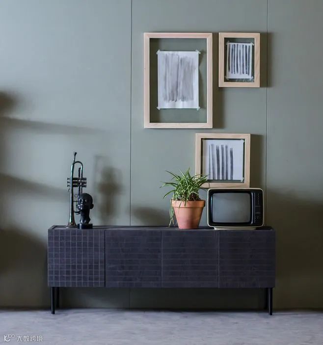 如果说小房间一定要用大家具来满足功能性需求,怎么让它变大的同时又变小呢?可以把墙刷成和大件家具差不多的颜色,再把视觉焦点转移到小东西、小家具上,完美达到让大家具变小甚至隐形的效果。