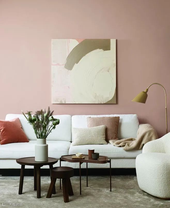 客厅推荐浅色,在家具颜色的选用上,选择纯度低、明度低的收缩色。