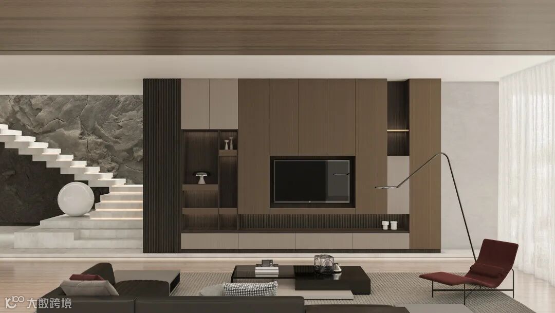 其柜体使用流金科技木,以双饰面的生产工艺高度还原了天然木皮品质和效果,同时解决天然木皮的虫洞、节疤和色变等天然缺陷,媲美原木皮家具,从细节到整体展现出高级贵气的空间质感。