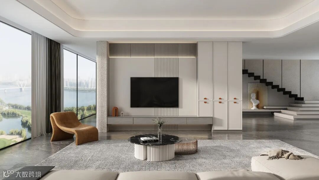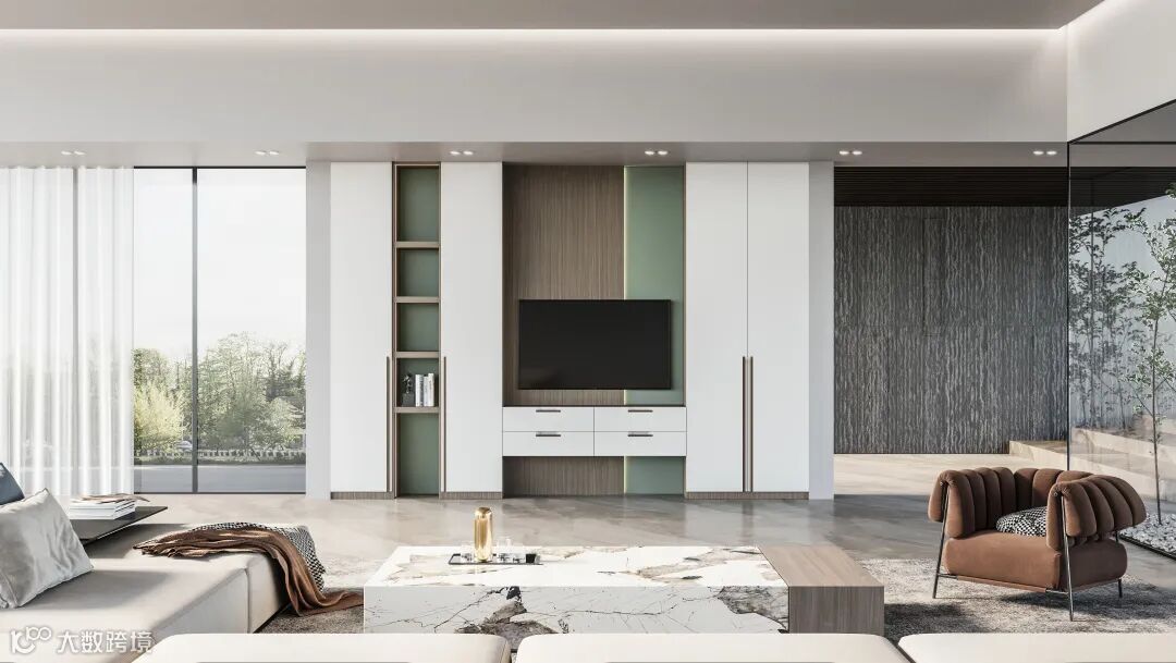 客厅电视柜以垂直形式呈现,一门到顶,再配合自然的色彩,交错出蓬勃的朝气,将年轻而随性的张力融于其中。