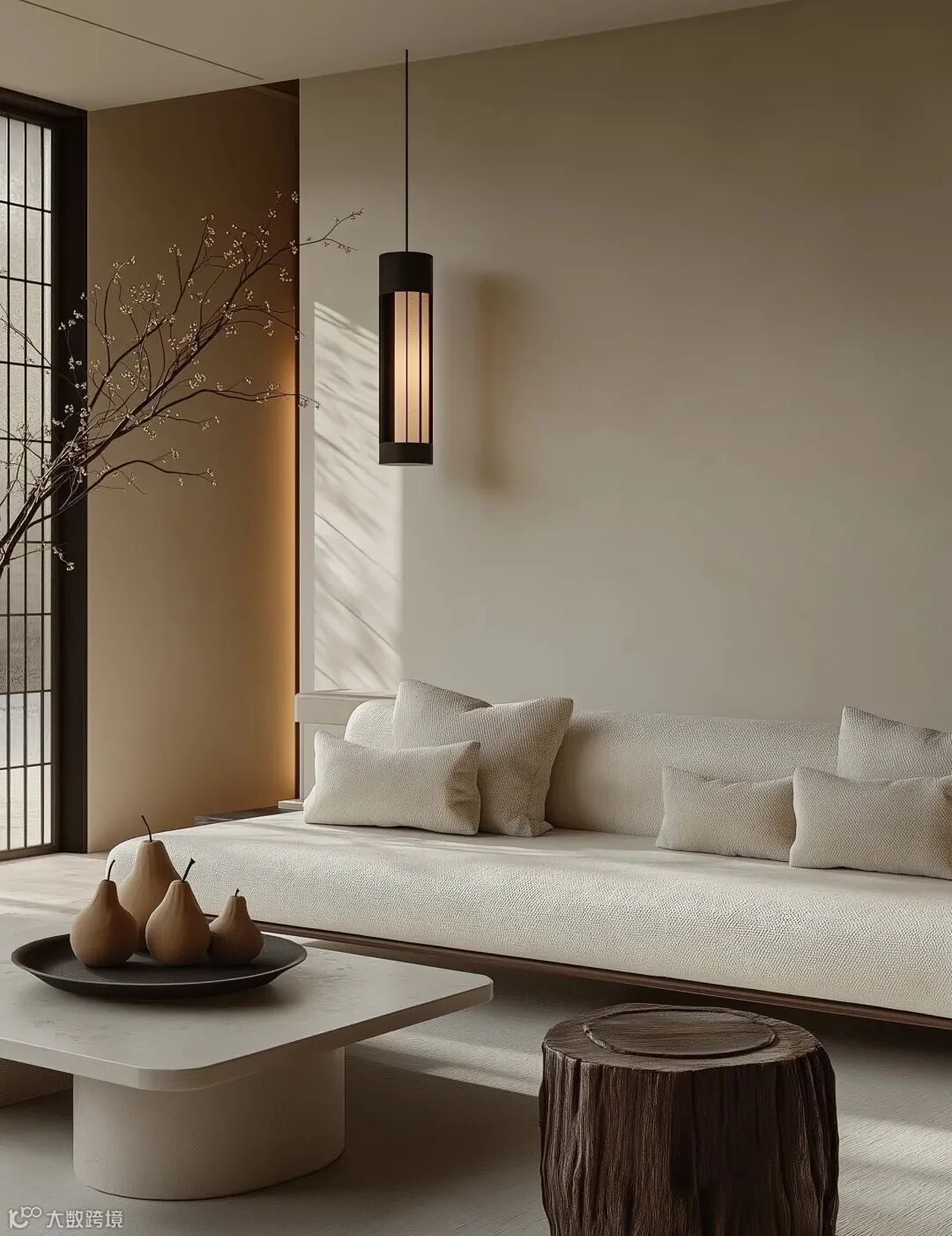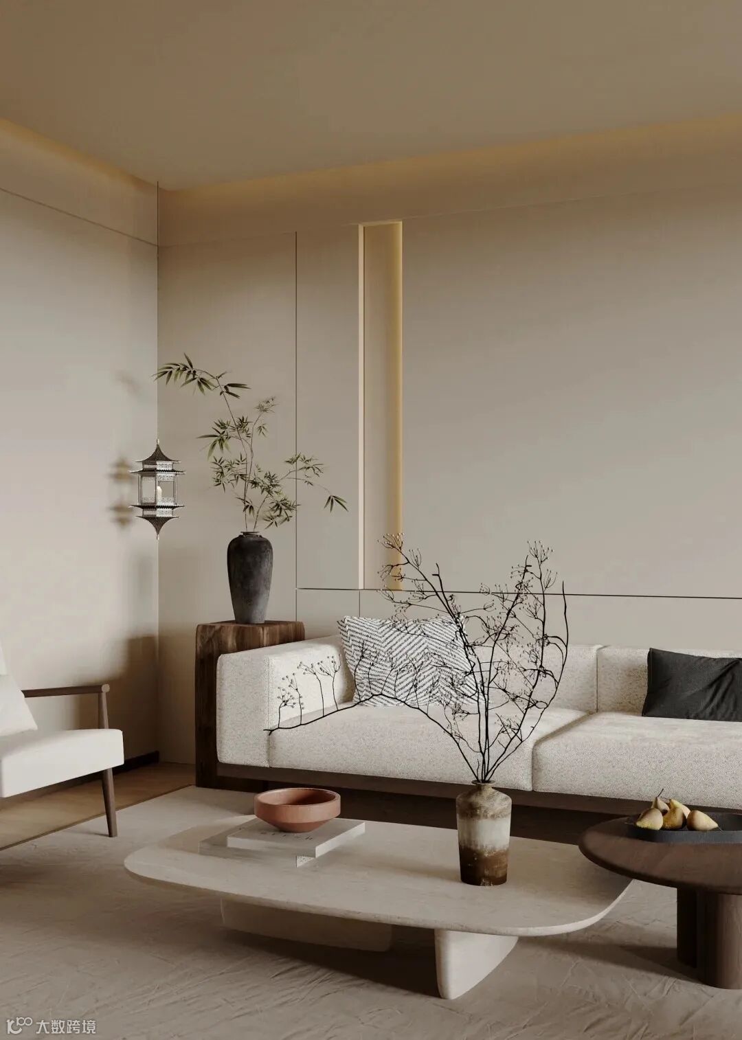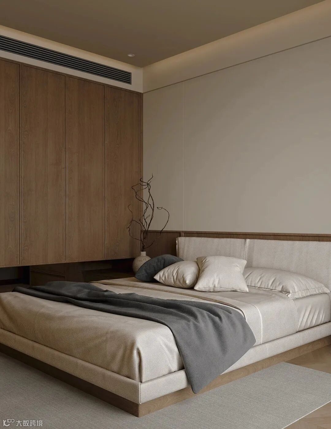 整体强调墙面与底面颜色一致,多选用低饱和的大地色系,如浅沙色、汝窑青、杏子灰等,营造出柔和、淡雅的氛围。