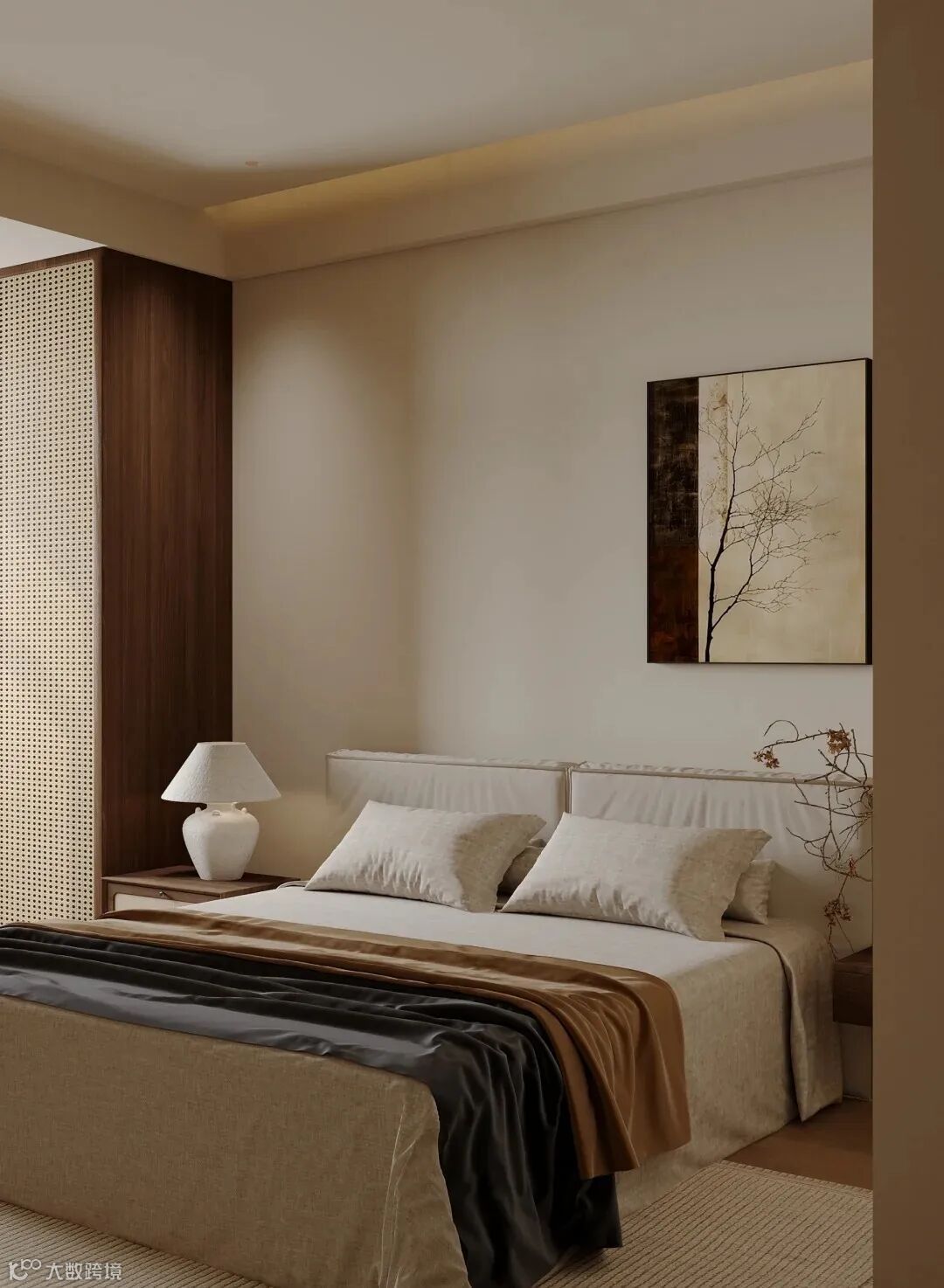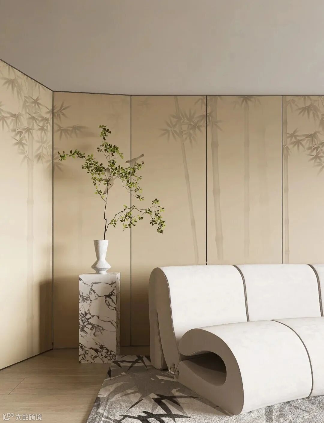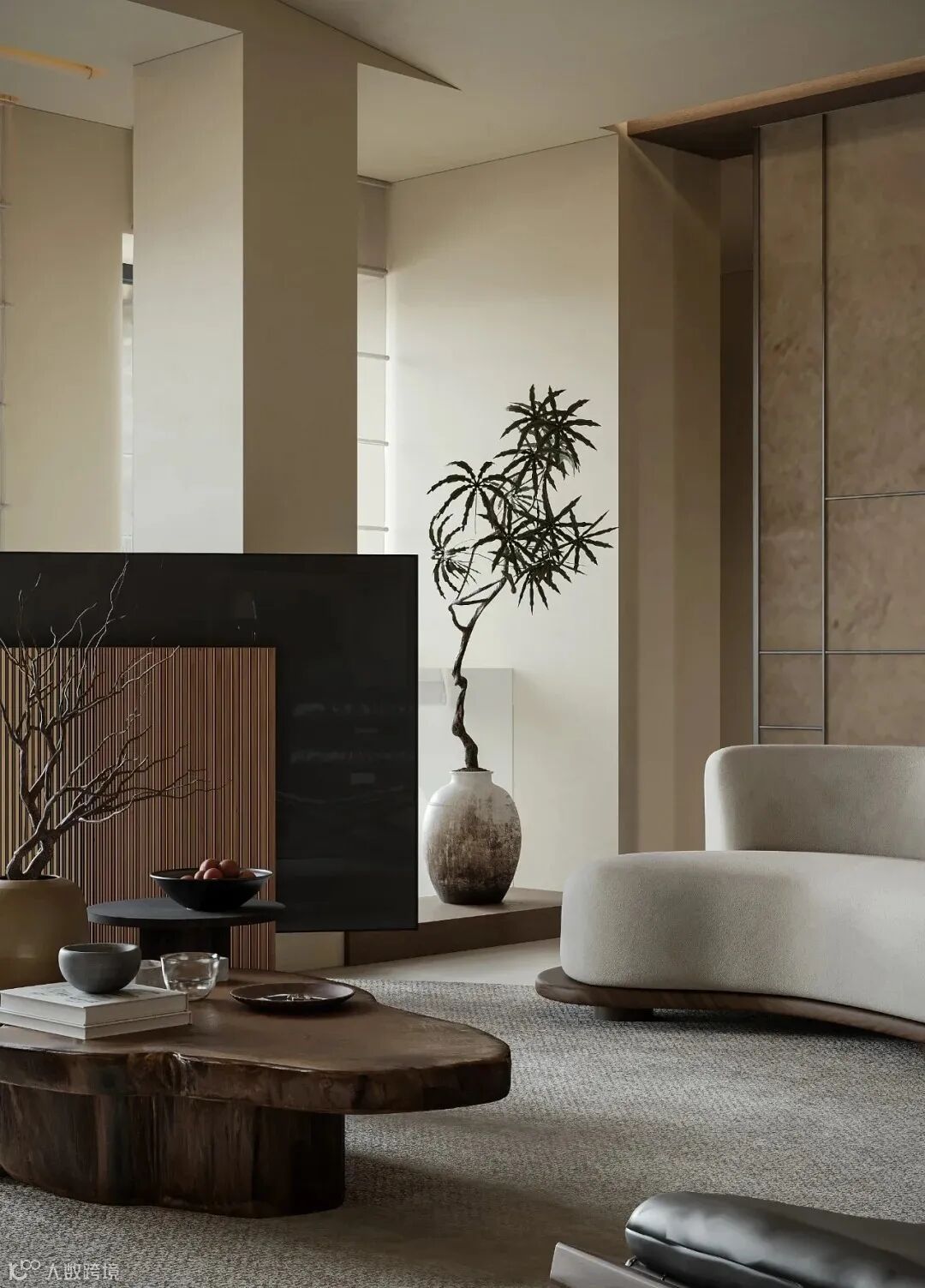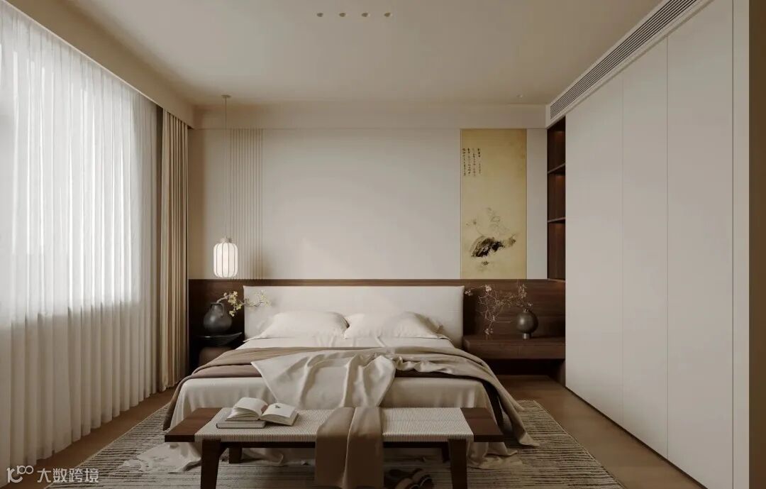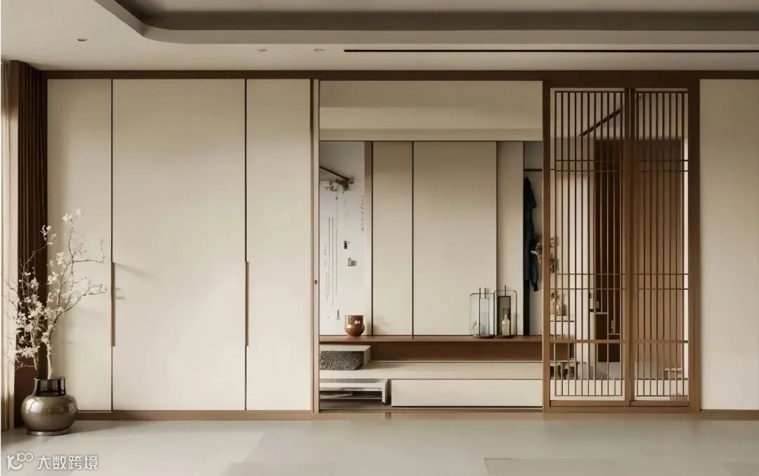 这些色彩突显了空间的宁静与含蓄,也展现了“以简胜繁”的设计原则,避免了过于鲜艳和繁杂的色彩搭配给人带来的视觉疲劳和心理压力,让人在空间中能感受到平和与舒缓。