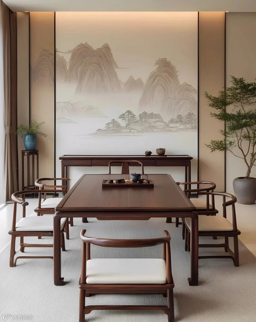 秉持 “非淡泊无以明志,非宁静无以致远” 的精神高度,落实到设计层面,彰显为对空间的空灵营造、色彩的融洽调配以及材质的质朴天成。恰与现代人钟情的简约素净、回归自然、身心舒泰的审美潮流,相互呼应,相得益彰。