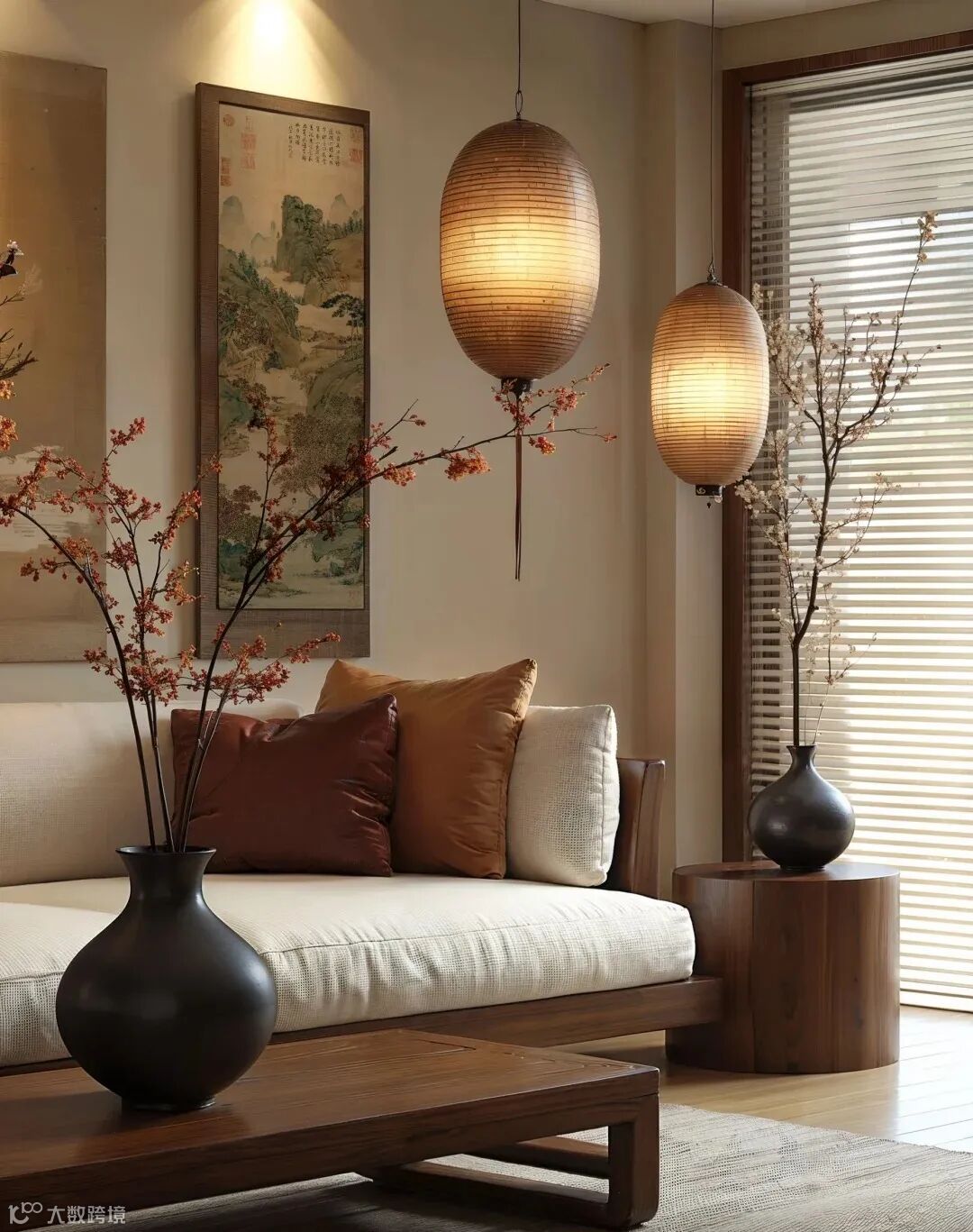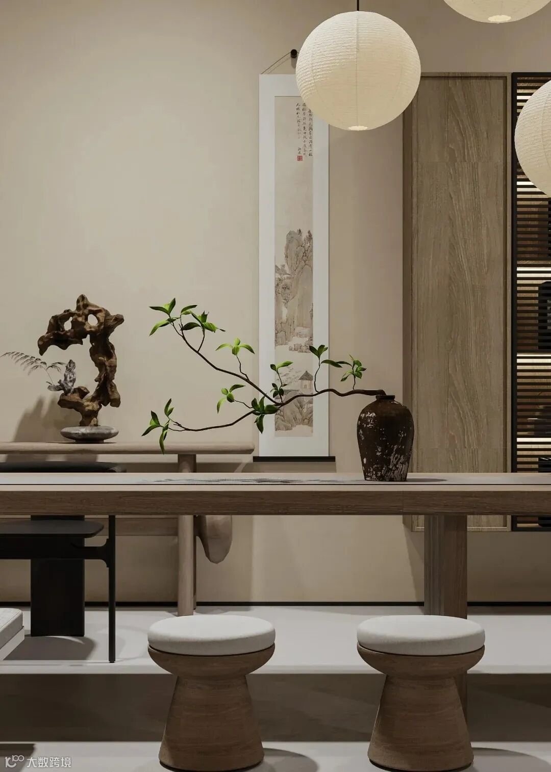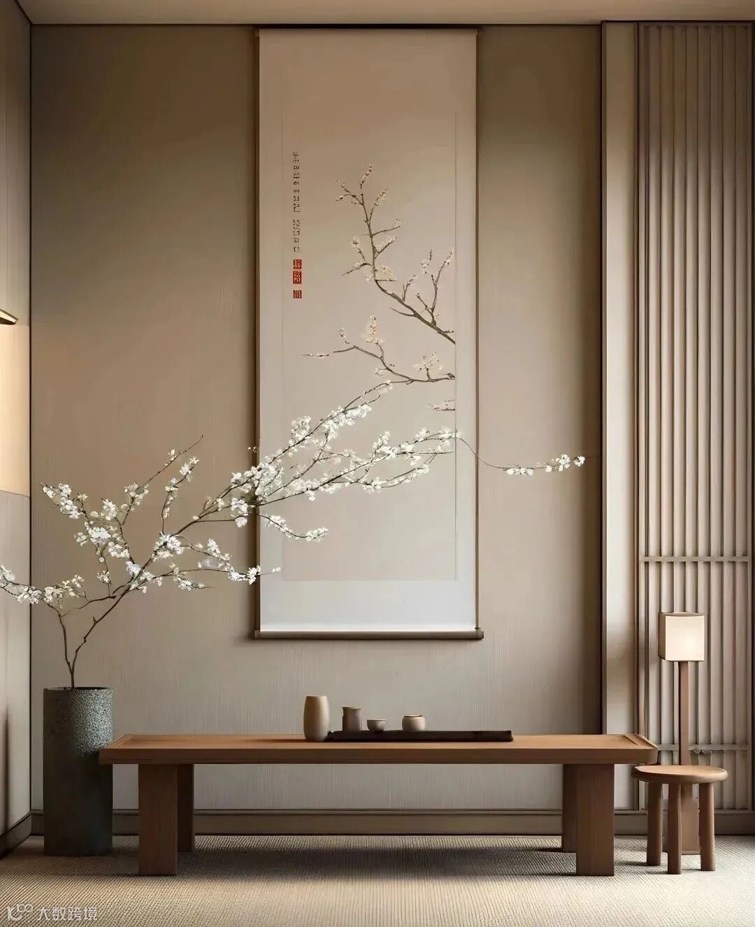 插花和盆景:挑选具有禅意的绿植,如南天竹、枯山水插枝等,为空间增添自然的生机和灵动,体现出对自然的崇尚与融合。