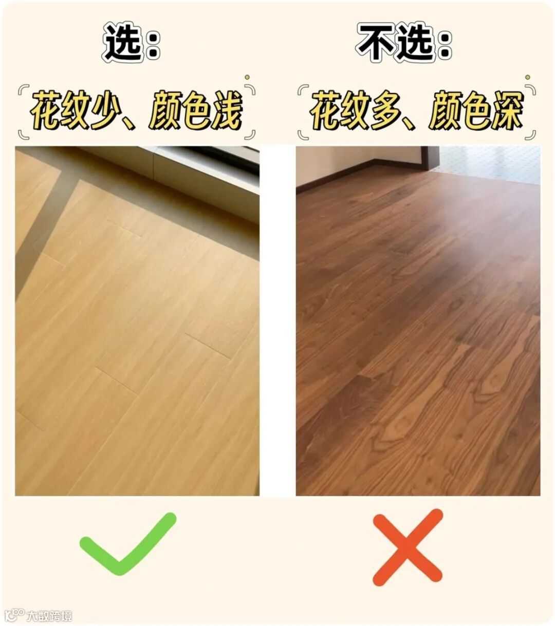 花纹和颜色的选择,要贴合整体装修风格,避免踩雷。花纹少、颜色浅的木纹砖,适配性更强,不管是中古风、原木风,还是简约风都能hold住,铺贴后整体效果更自然柔和,还能让空间显得明亮宽敞,特别适合小户型。
