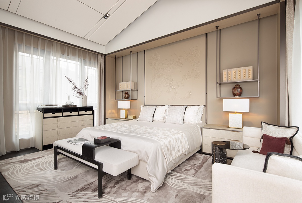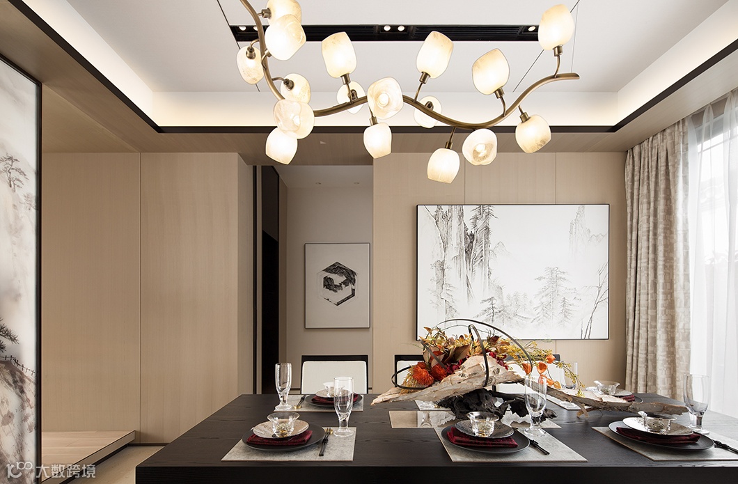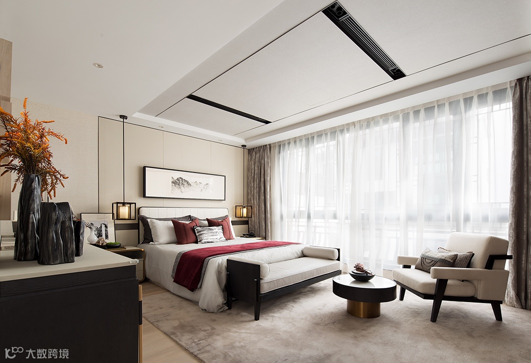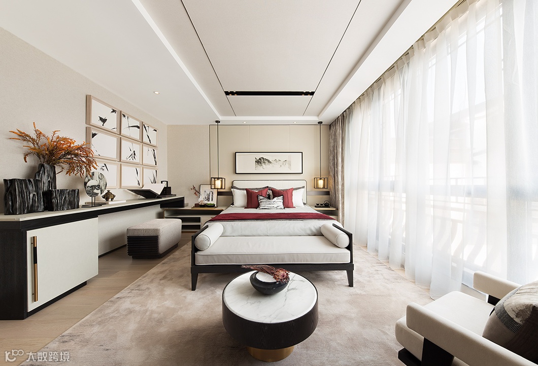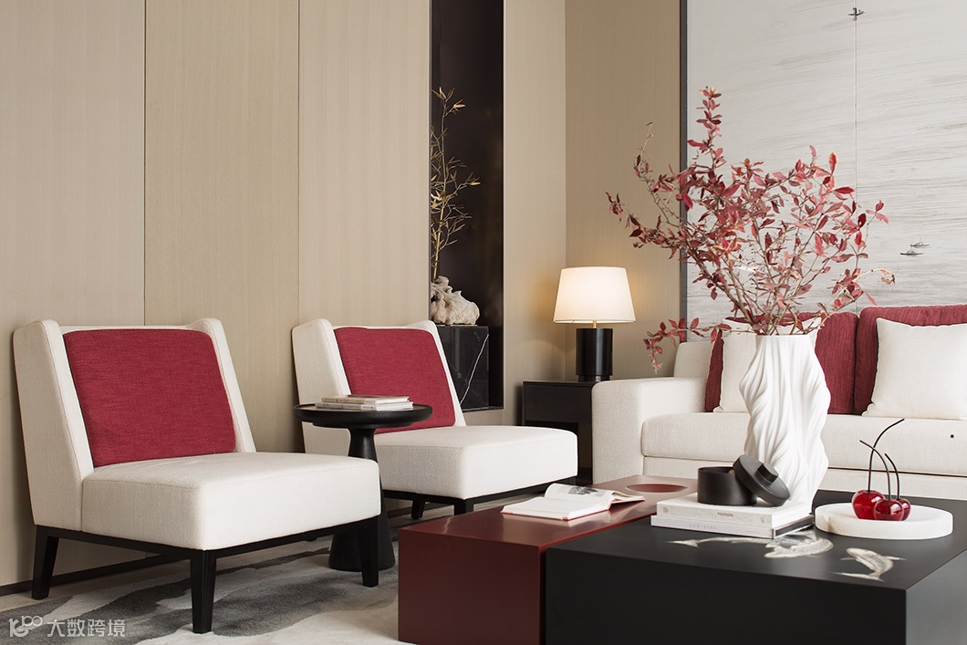 素雅的浅木色为底色,配以硬朗的实木、质朴的棉麻布艺,天然大理石,通透的石榴红色调铺叙空间层次。