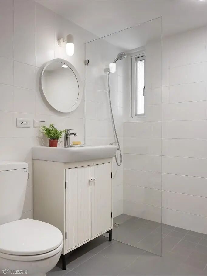 卫生间利用玻璃隔断实现干湿分离,让居家生活更舒适便捷。淋浴区的墙上若做上壁龛,在进行淋浴的时候会比较方便拿取沐浴用品,并且还不占空间。