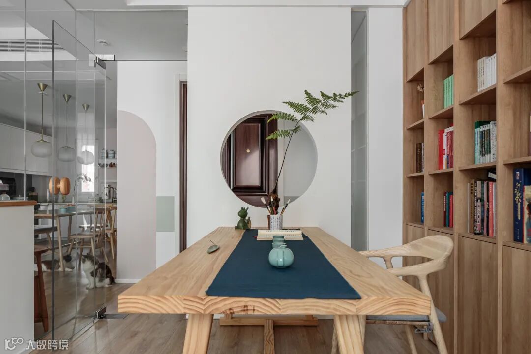 ▲ 猫咪时常会从圆形端景处溜进书房