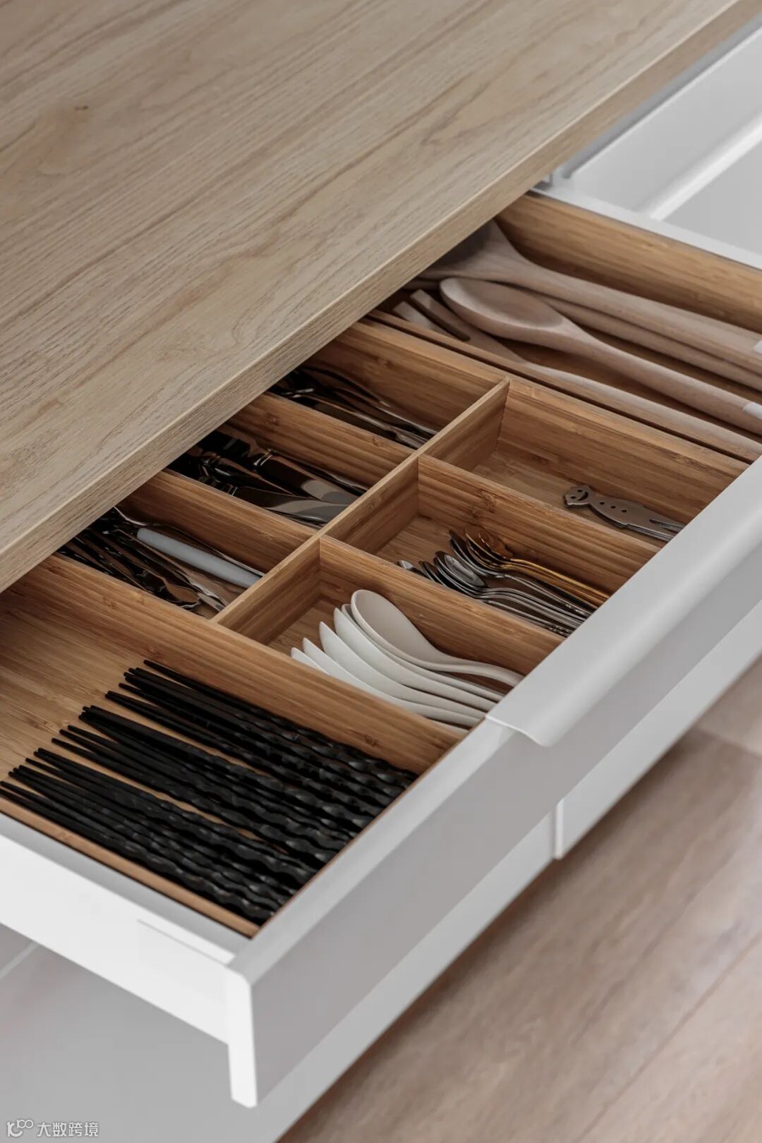 餐厨空间的储物柜是女主人根据自己与先生的生活习惯,然后查阅了许多资料,多次去宜家学习测量后规划定制的。