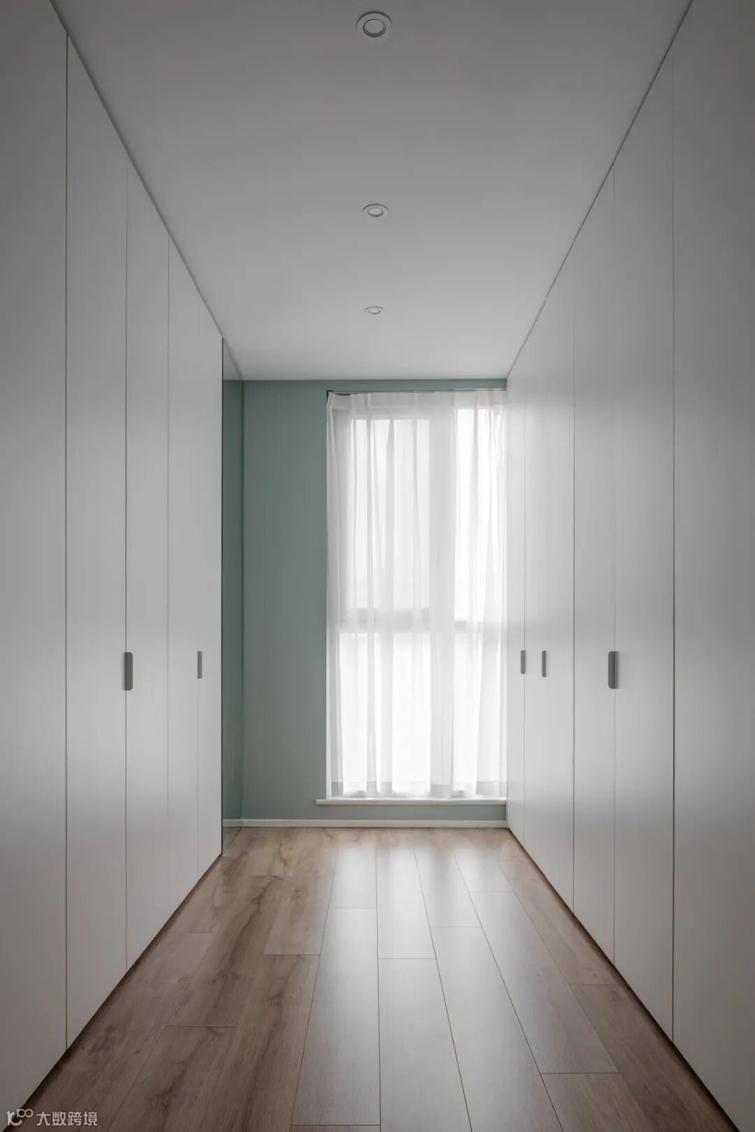 独立衣帽间拥有左右两侧2800mm+3500mm的超长储物柜,落地大窗户传递入室内的采光让空间显得自然放松,纯粹简单才是美好。