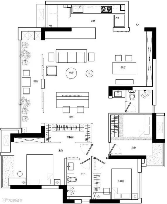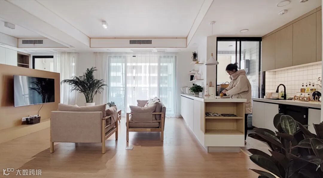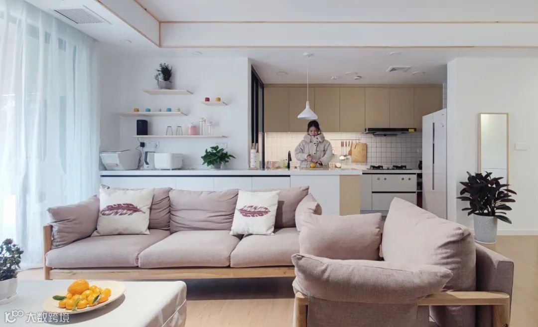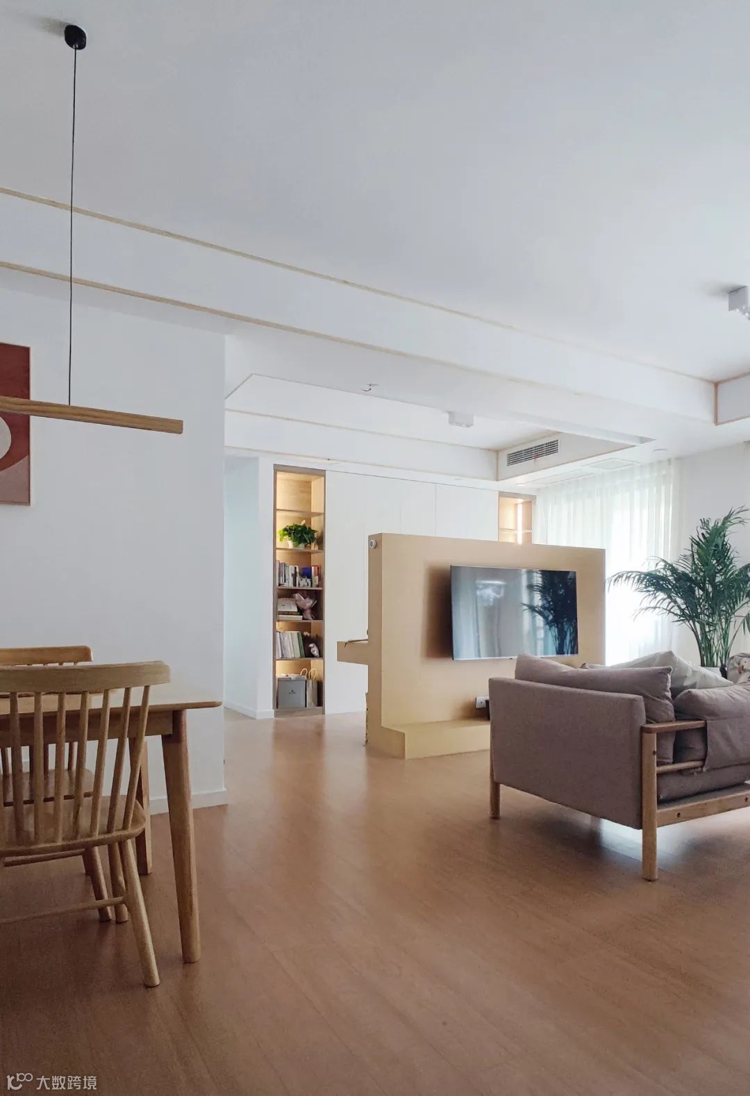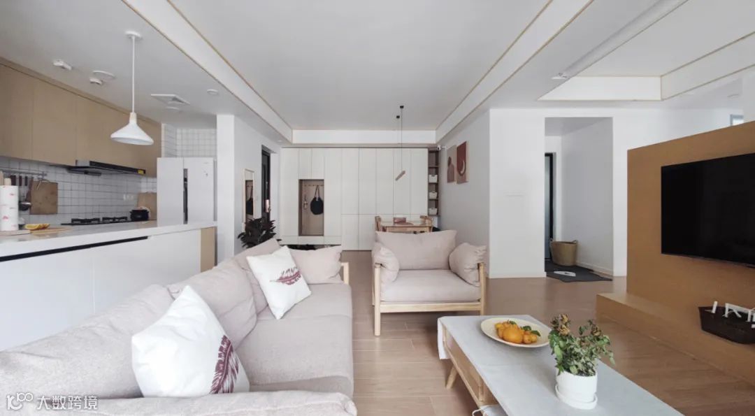整体色调变得雅致清新,开放的客餐厅相当通透,视觉上宽阔了一倍。