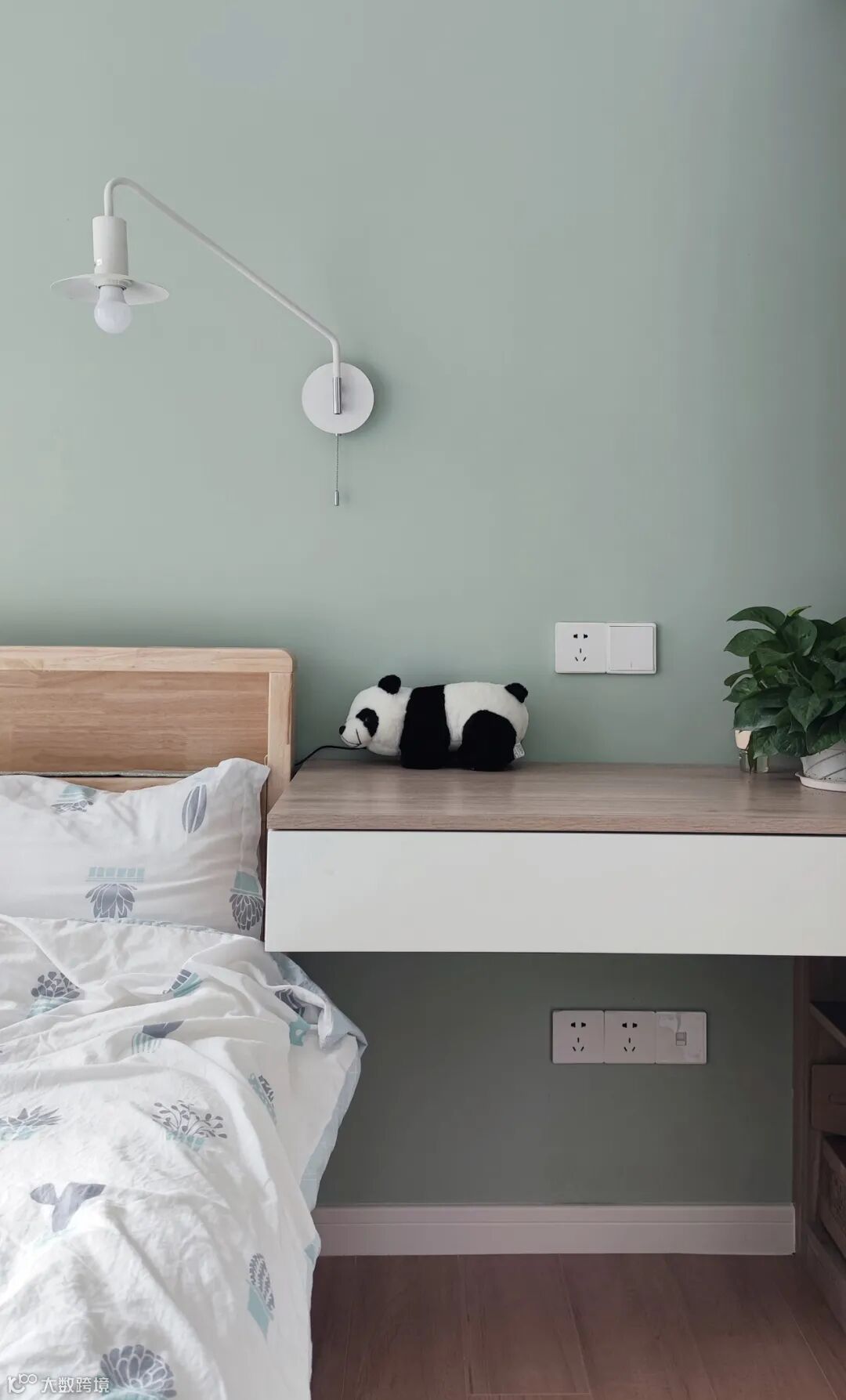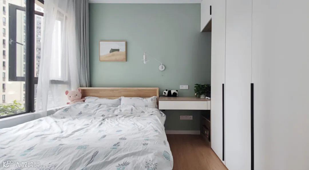 儿童房选择了清新的豆绿色,空间虽然不大,但充沛的采光以及浅色系的色彩搭配,视觉上扩大空间。