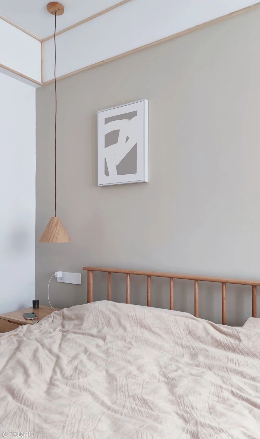 卧室温和而平静,乳白色和浅绿色为主,木色点缀,让空间回归安宁,身在其中可以坐享平衡和自由的舒适之感。