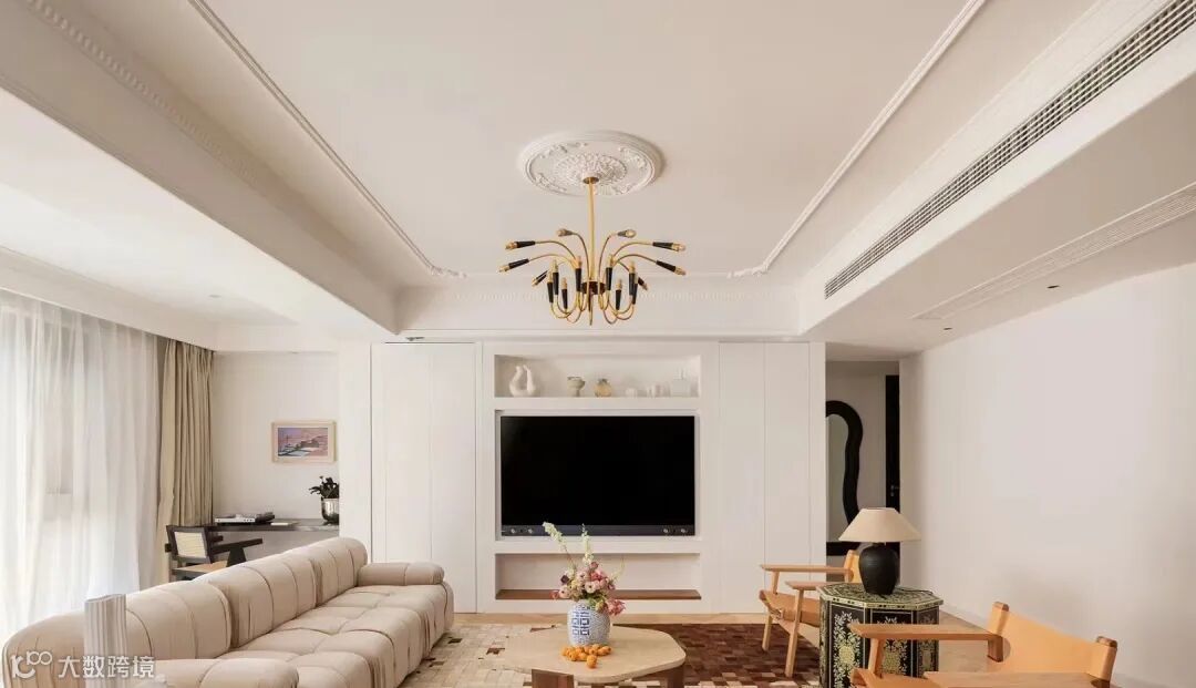 而在新法式风格中往往会有一些中式家具的融入,中式设计的硬朗线条和法式的温润柔和相呼应,弱化彼此,又相互共生,展现出独特的美学个性和实用价值。