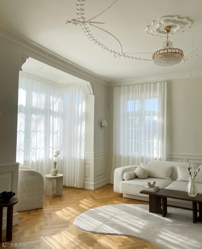 上面跟大家盘点了新法式的元素,光知道也没用,还要会“抄”,会灵活的应用到自己的设计方案之中,来一起看看如何把这些元素,应用到自己的设计中去吧~