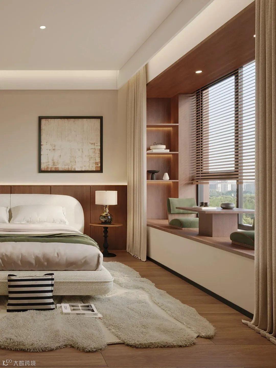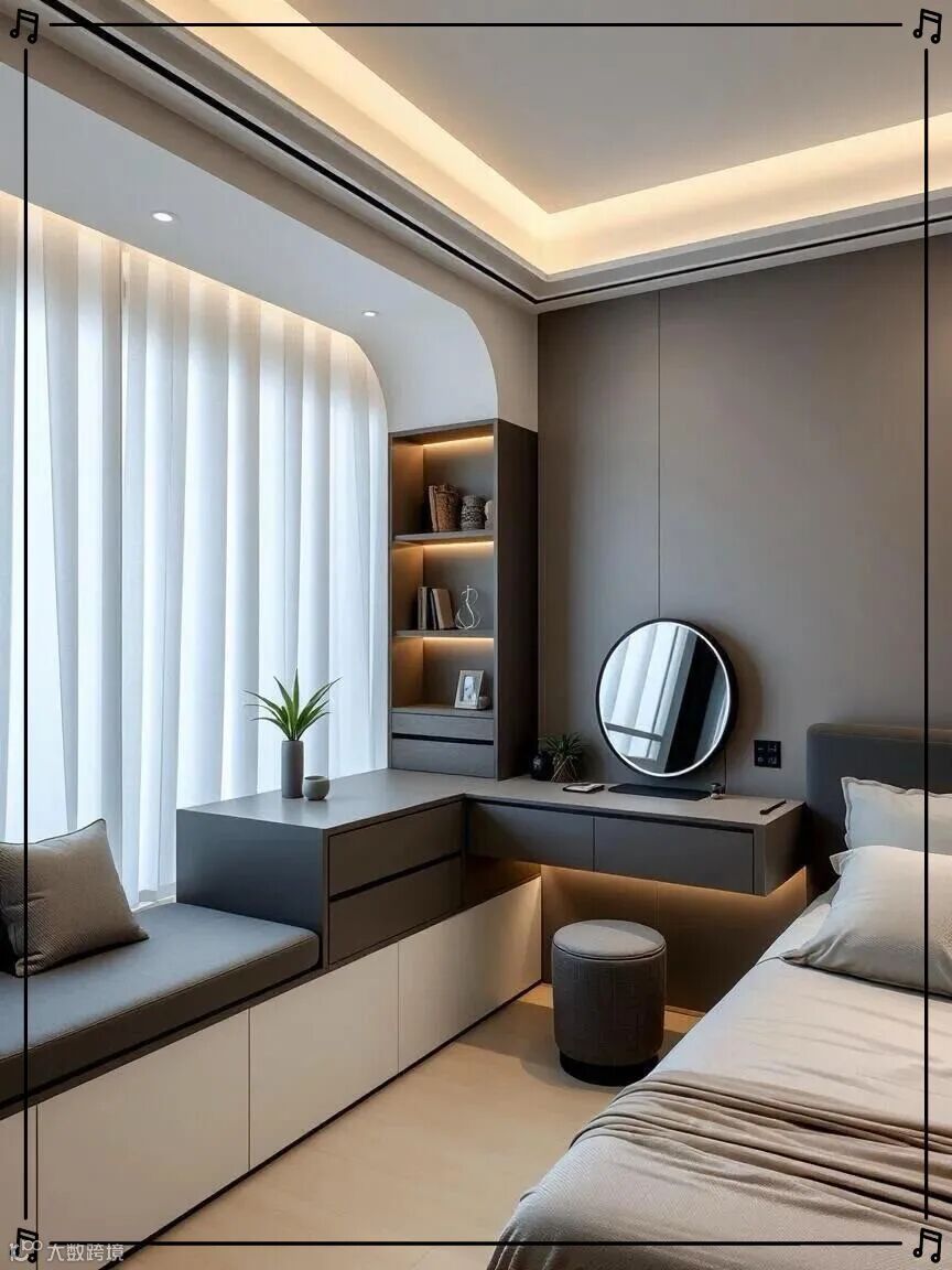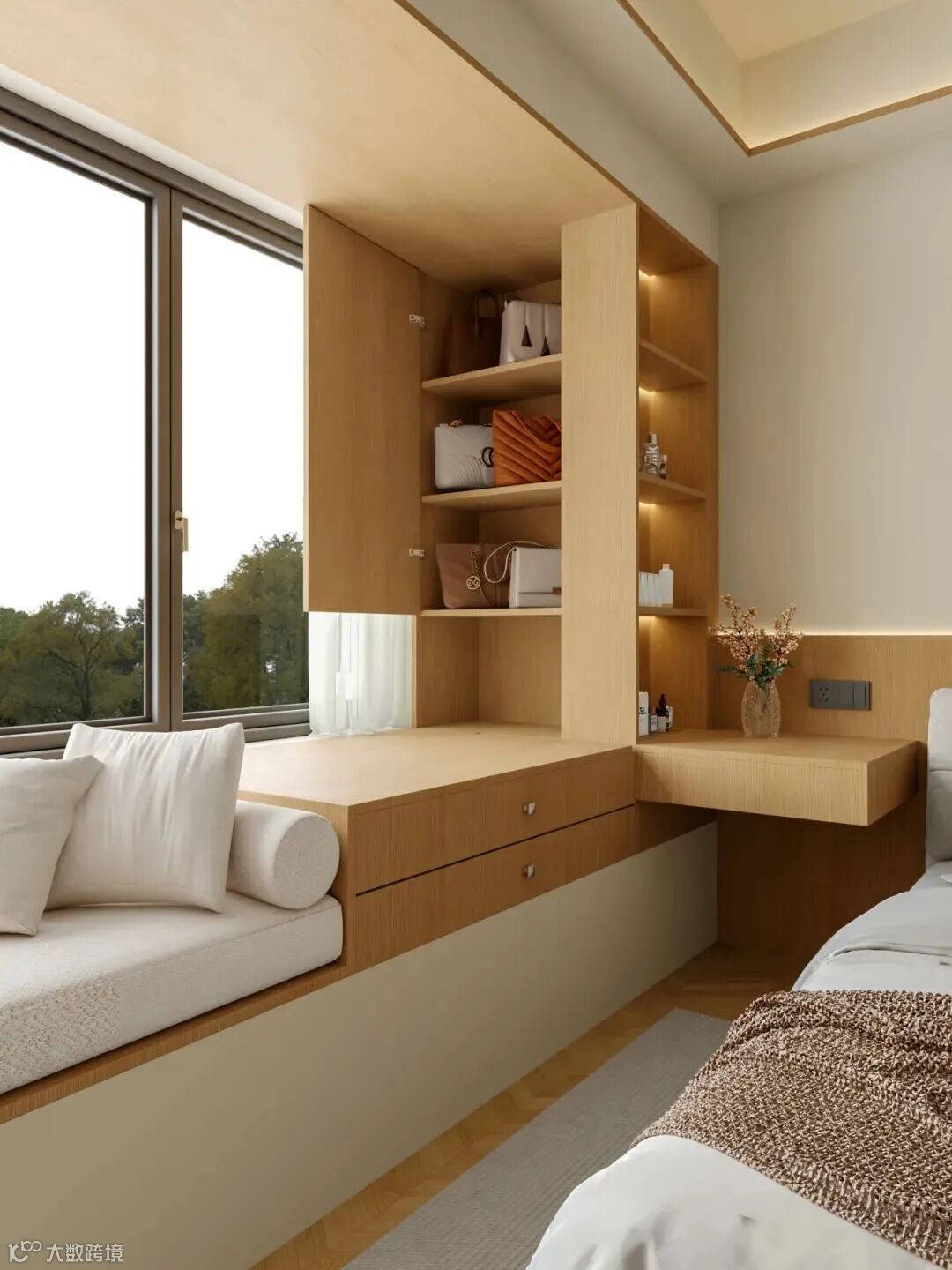 飘窗书桌自带氛围感:清晨阳光洒在书页上,傍晚抬头能望到晚霞,加班累了瞥一眼窗外,疲惫感都少了一半。