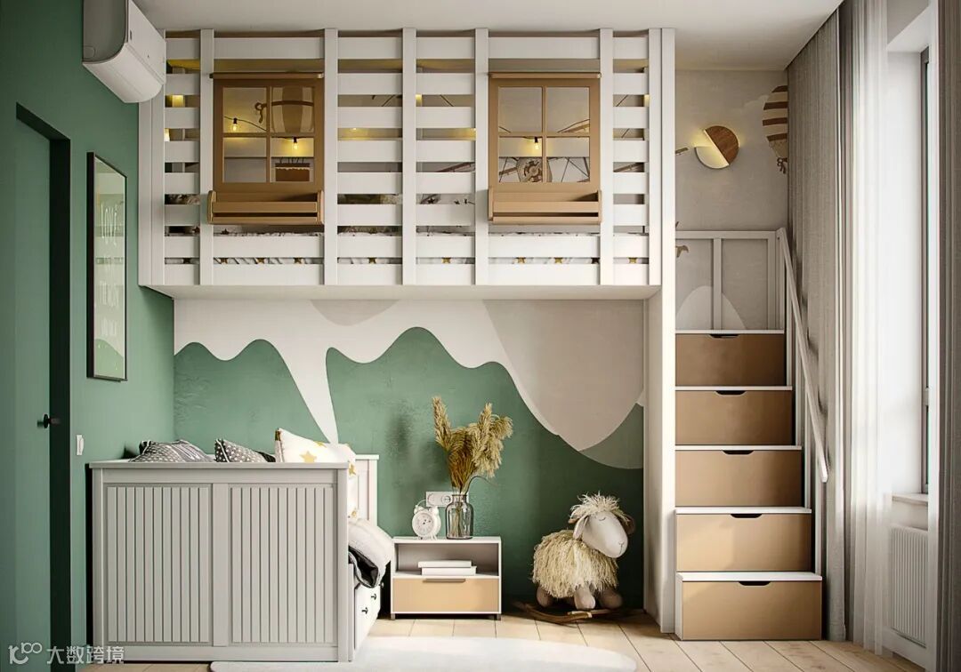 蓝色、粉色、绿色、木色的搭配,形成强大的视觉冲击,一个实用与艺术完美融合的空间,同时强调着主人独特的喜好与格调。