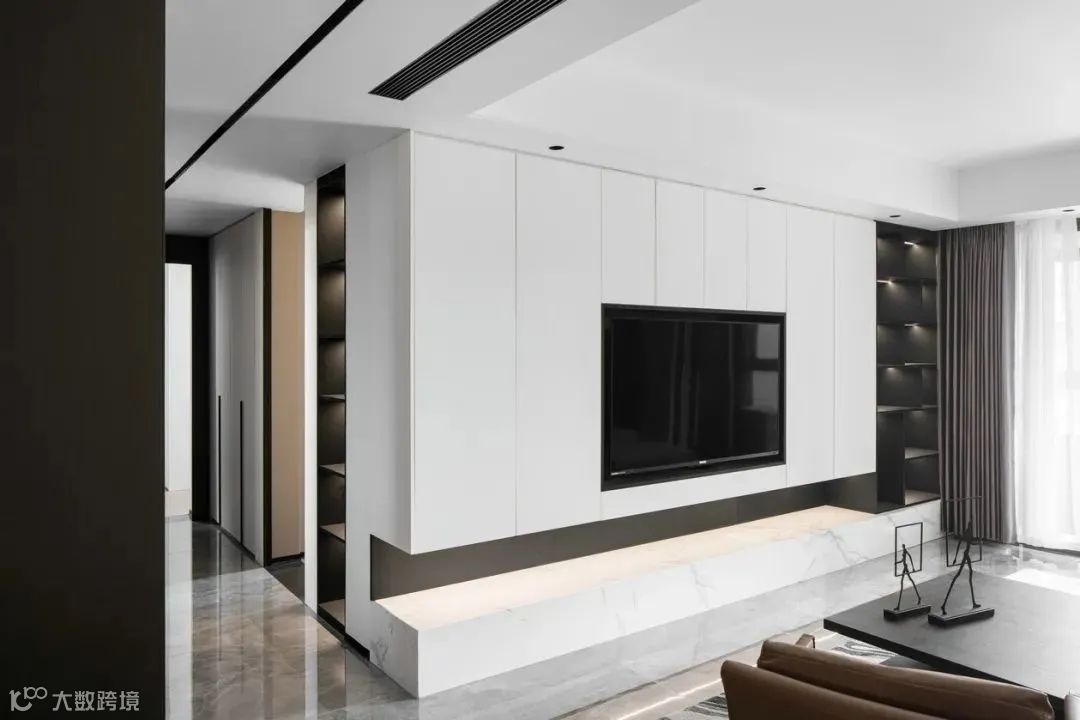 对于客厅而言,电视柜则是解决整个公共区收纳的必备神