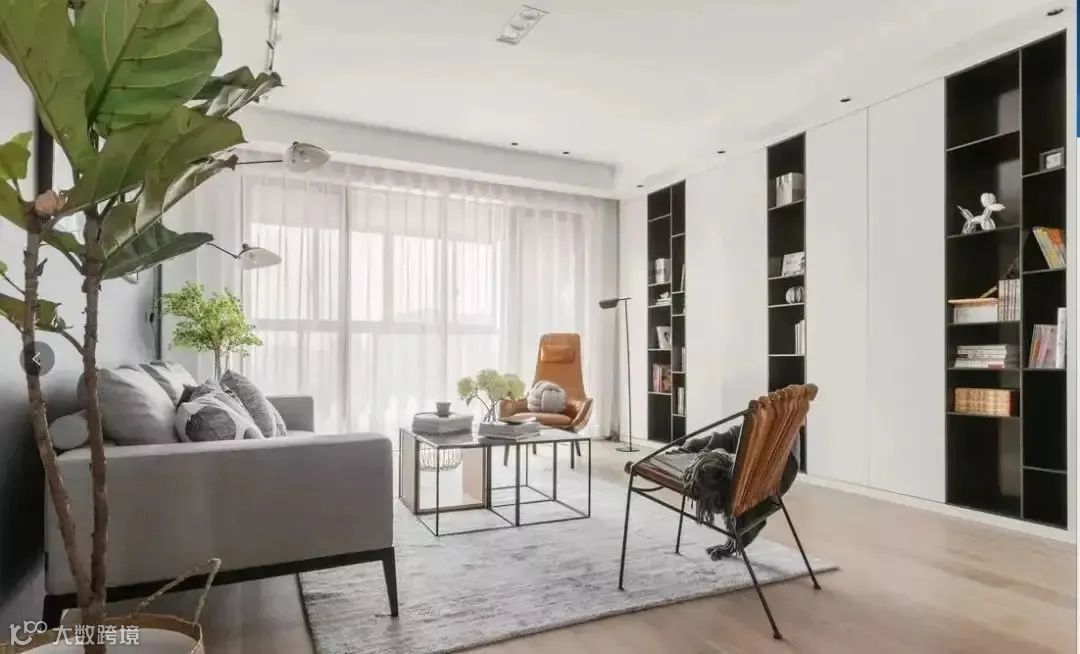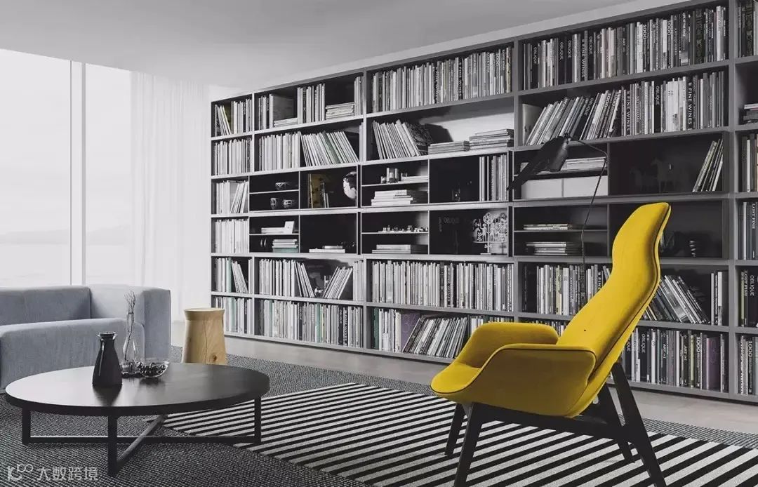 藏书需求较大又没有独立书房的家庭,可以将客厅原本的电视柜改成书柜的设计,根据空间的大小定制书架,整面墙的操作空间,可以充分满足。